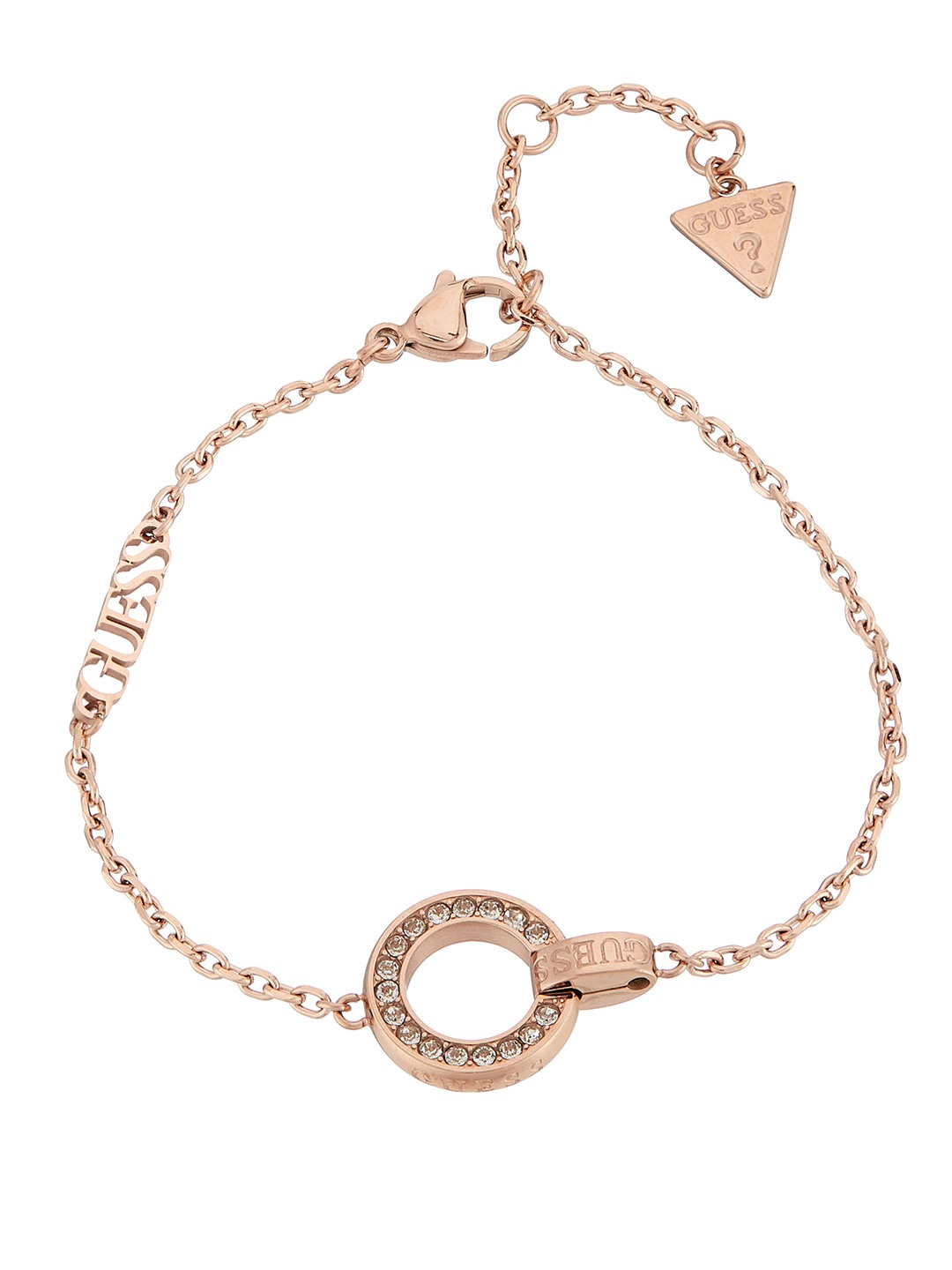 Guess Women Circle Lights Rose Gold Pleated Steel Bracelet