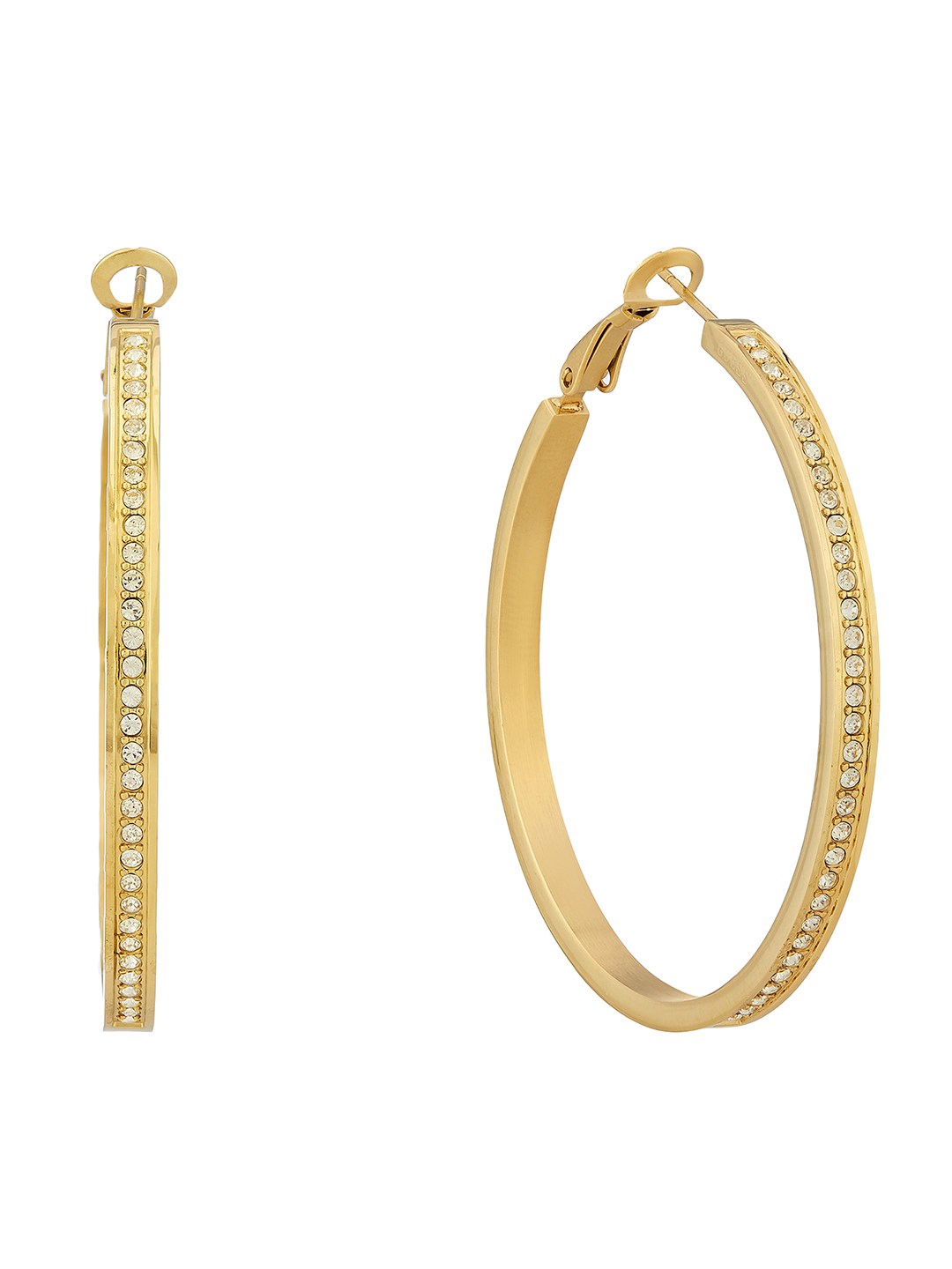 Guess Women Color My Day Gold Pleated Steel Hoop Earrings