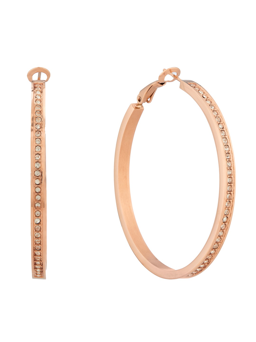 Guess Women Color My Day Rose Gold Pleated Steel Hoop Earrings