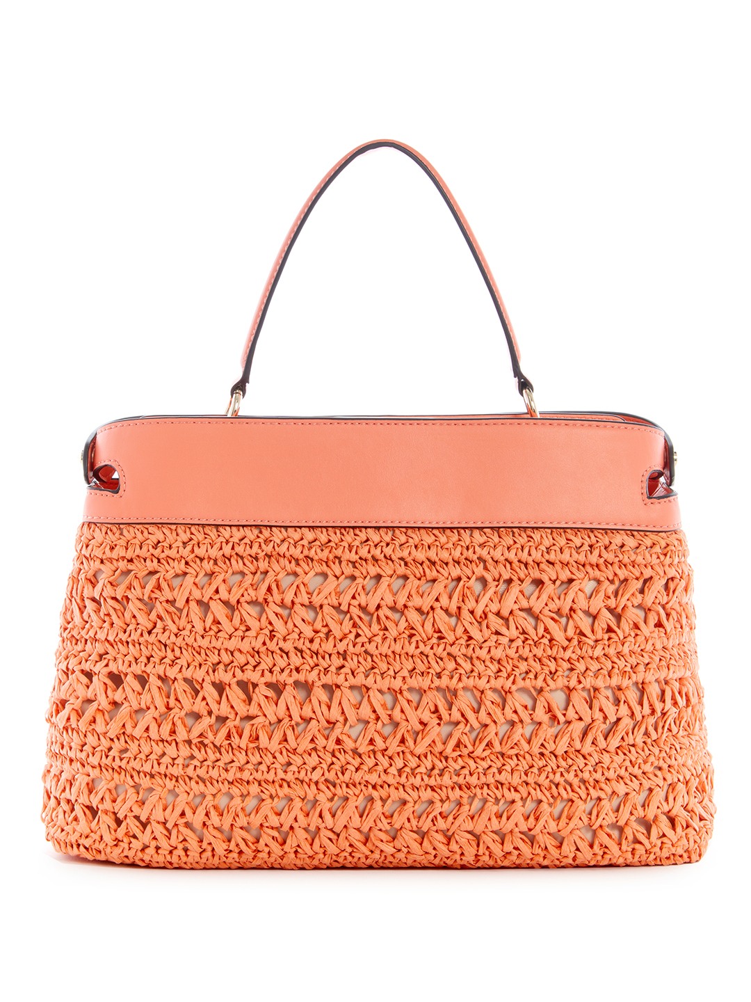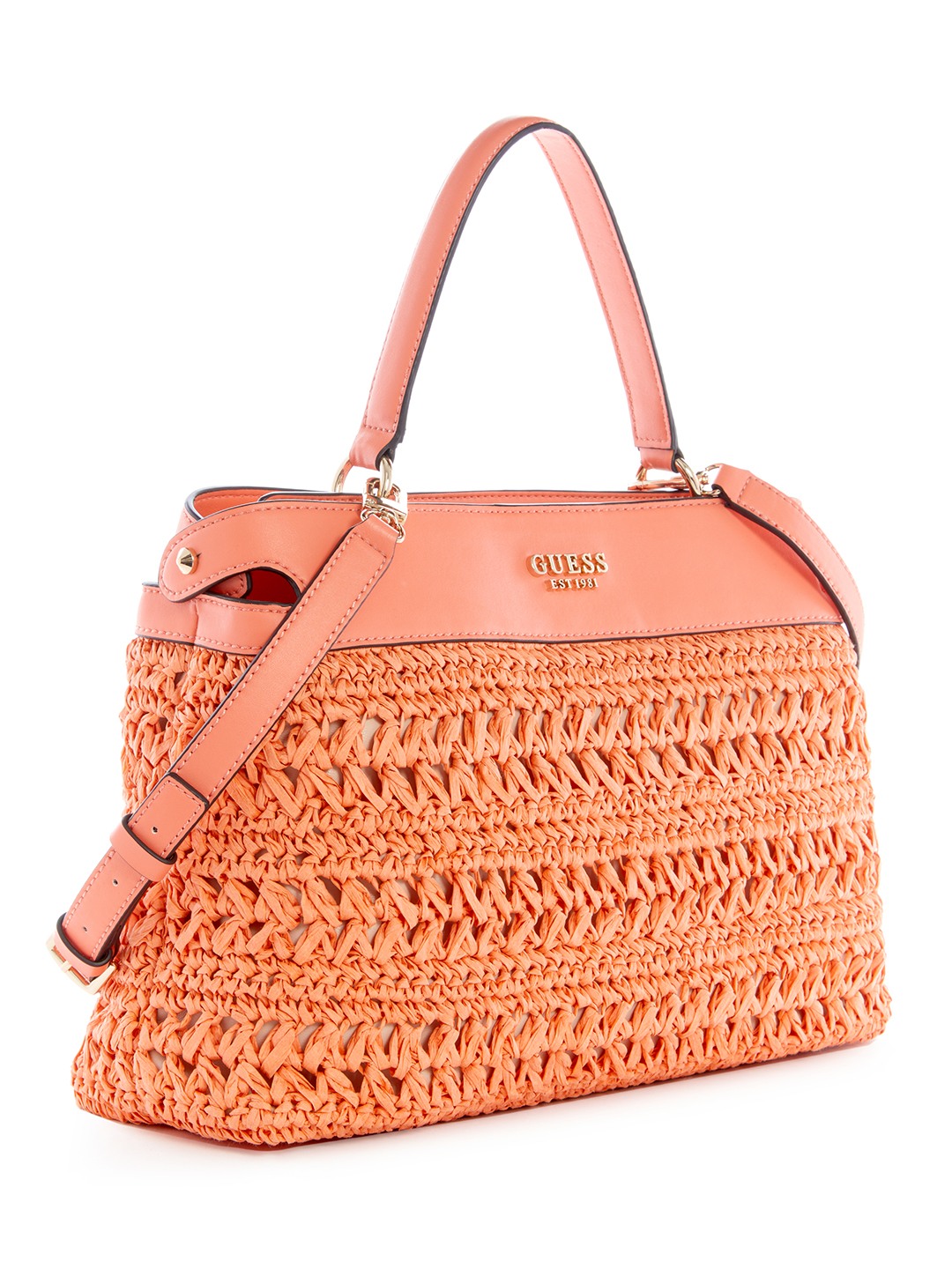 Guess Women Coral Self-Design Satchel Bag with Magnetic Button Closure