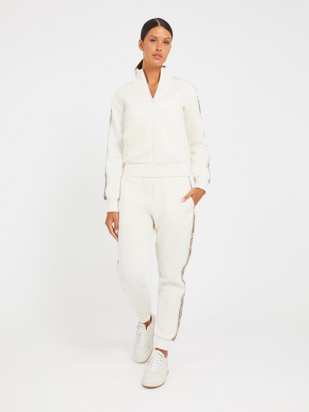 Guess Women's White Polycotton Solid Regular Fit Joggers