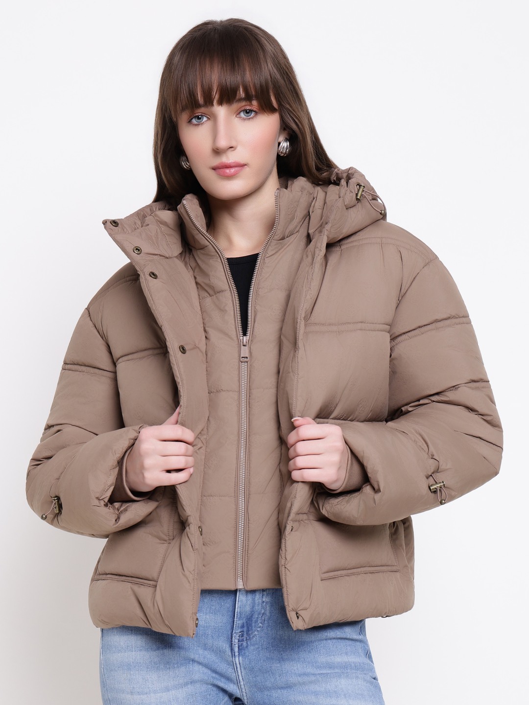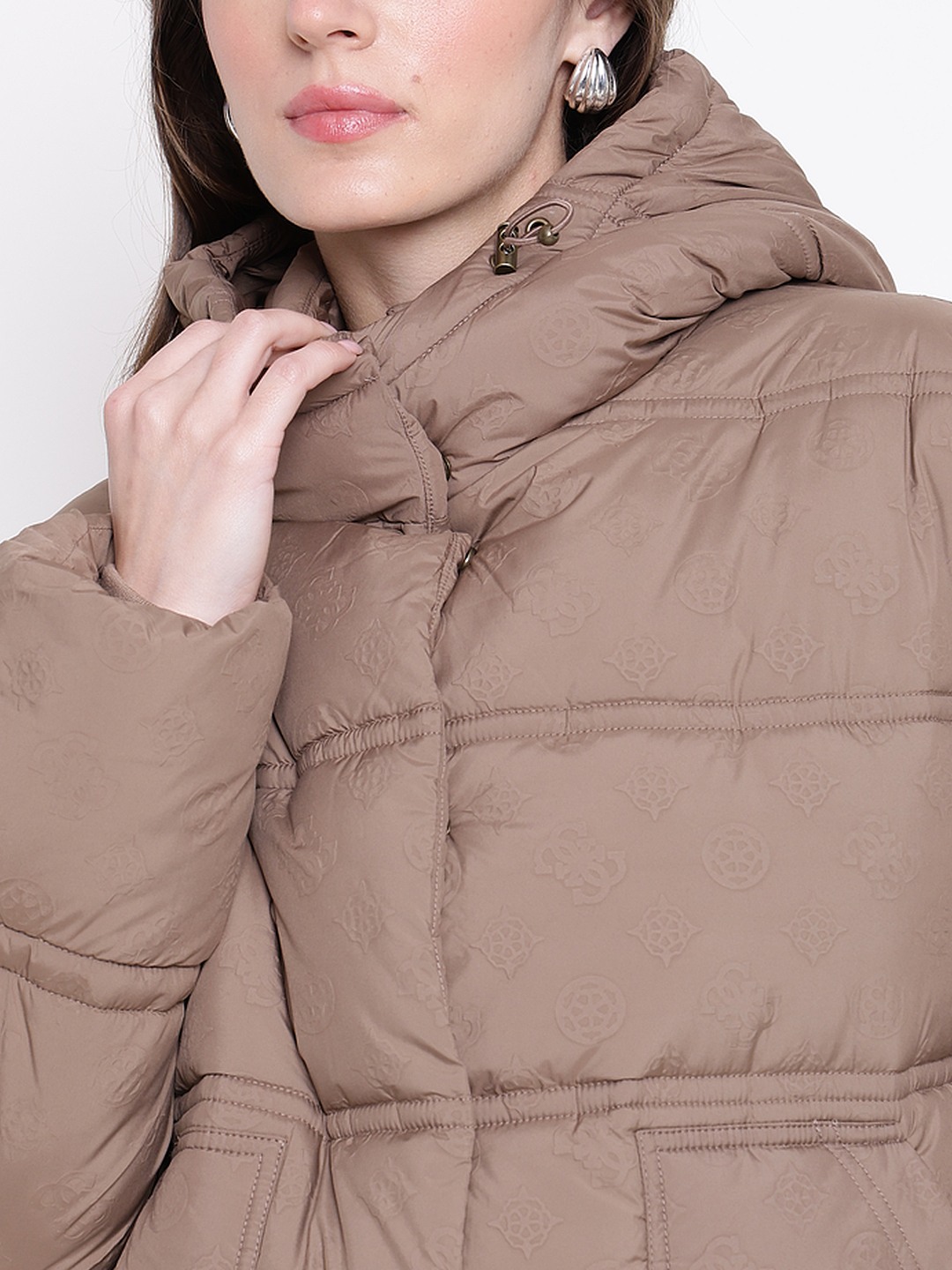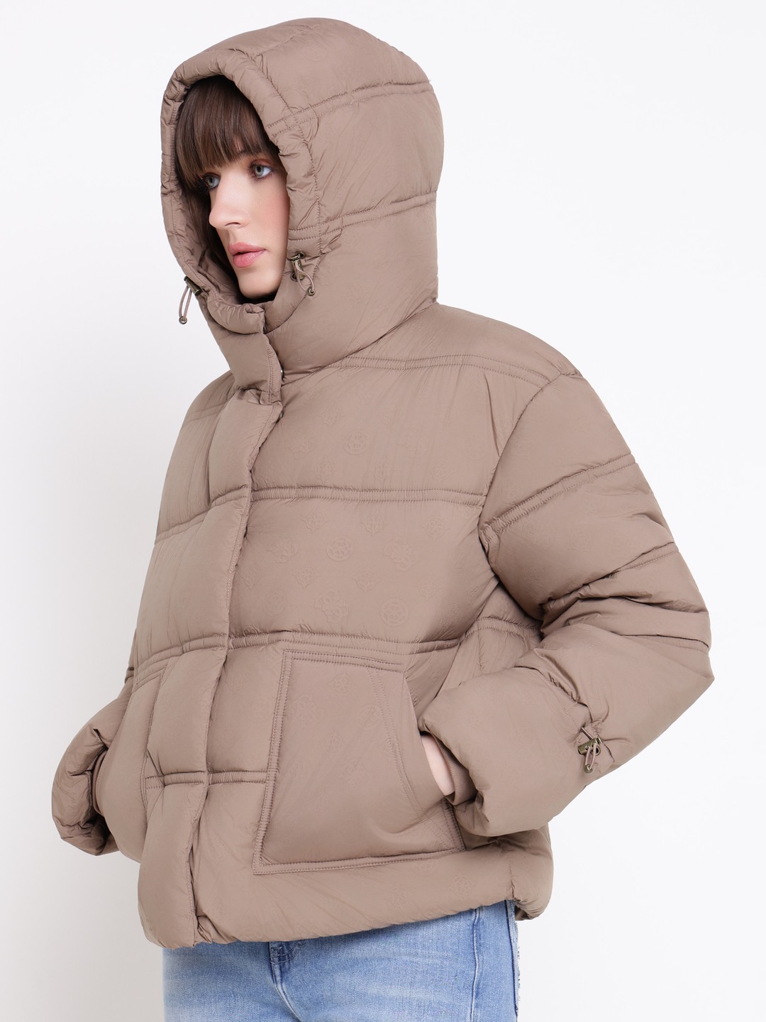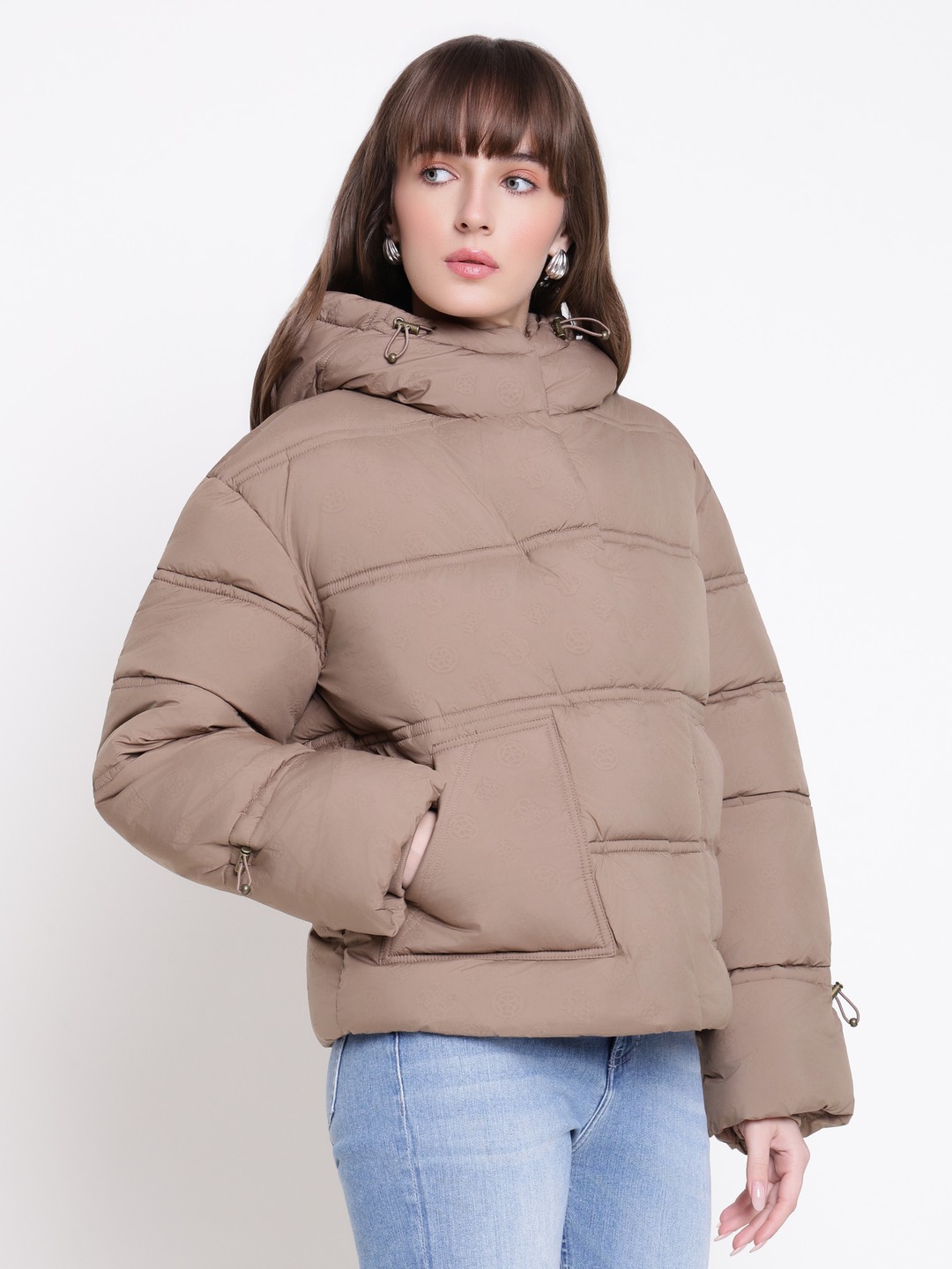 Discover the perfect blend of style and comfort with the daisy peony puffer jacket in brown. Designed for women, this regular fit jacket features an embossed pattern that adds a touch of elegance. It offers full sleeves and a hooded neck for added warmth and protection against the elements. Made from durable polyester fabric, it ensures long-lasting wear. The zipper closure provides easy wear and a secure fit. Ideal for chilly days, this jacket combines functionality with a chic look for everyday wear.
