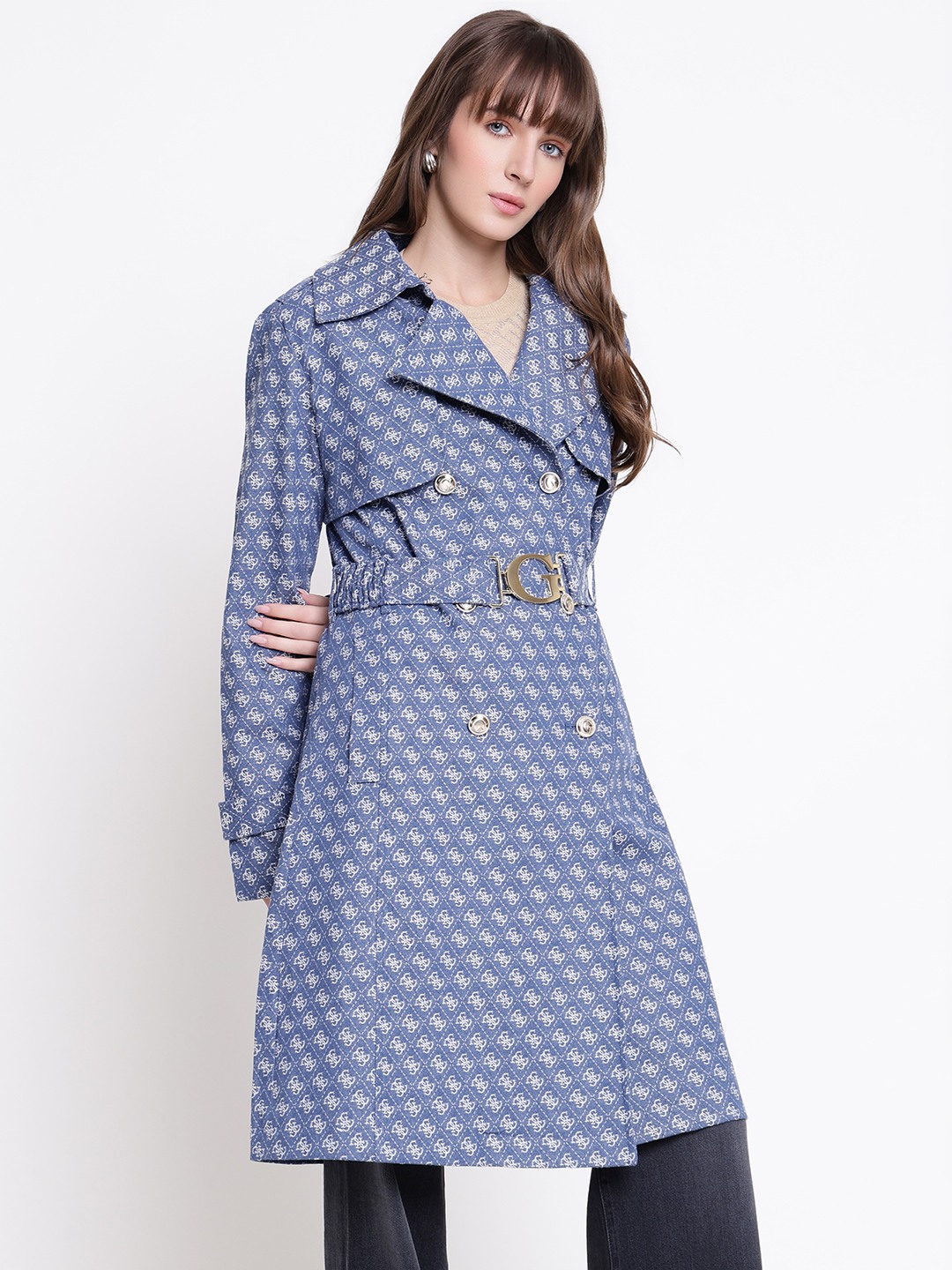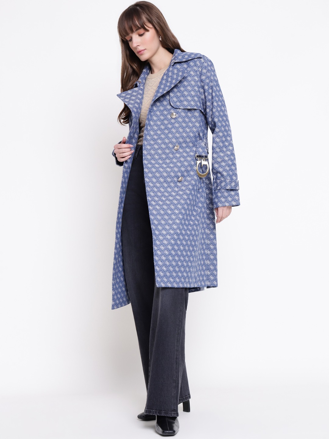 The diletta belted trench coat offers a stylish and versatile addition to any wardrobe. Crafted from durable polyester fabric, it features a jacquard pattern that adds a touch of elegance. Designed with a regular fit, full sleeves, and a classic lapel collar, it provides comfort and sophistication. The coat is secured with a convenient button closure and includes a matching belt to enhance your silhouette. Perfect for both casual and formal occasions, this trench coat combines functionality with timeless style for women.