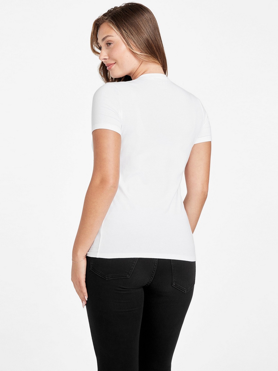 Elevate your wardrobe with our chic white T-shirt, designed for the modern woman who values style and comfort. This elegant piece features an eye-catching embellished pattern that adds a touch of glamour to any outfit. Crafted from a premium cotton blend fabric, it ensures a soft, breathable feel for all-day wear. The classic round neck and short sleeves offer a timeless silhouette, while the slip-on closure provides effortless dressing. Perfect for casual outings or dressed-up occasions, this versatile T-shirt is a must-have staple.