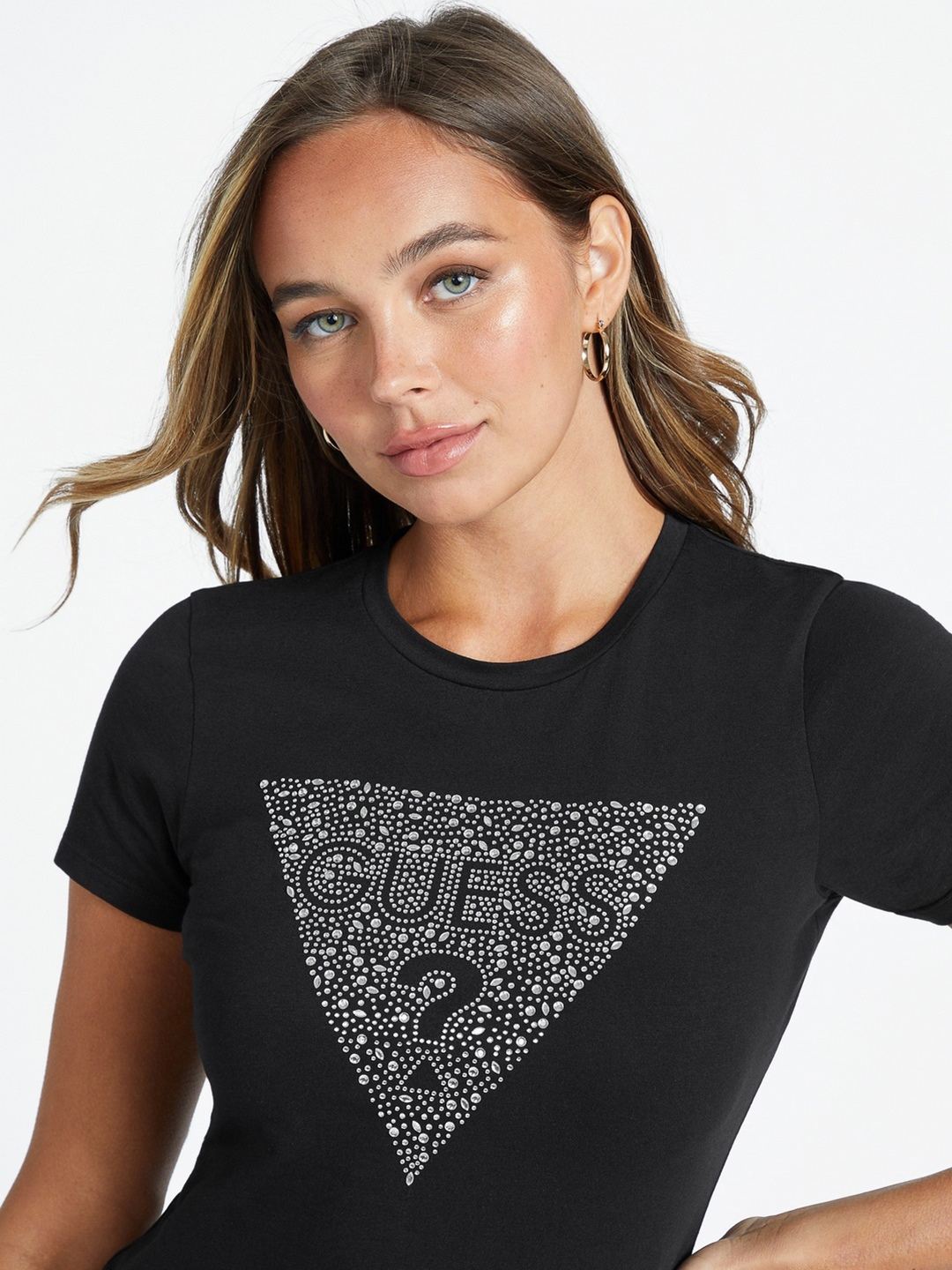 Elevate your wardrobe with our chic black T-shirt, designed for the modern woman who values style and comfort. This elegant piece features an eye-catching embellished pattern that adds a touch of glamour to any outfit. Crafted from a premium cotton blend fabric, it offers a soft, breathable feel perfect for all-day wear. The classic round neck and short sleeves provide a timeless silhouette, while the convenient slip-on closure ensures effortless dressing. Ideal for both casual outings and special occasions, this versatile T-shirt is a must-have addition to your collection.