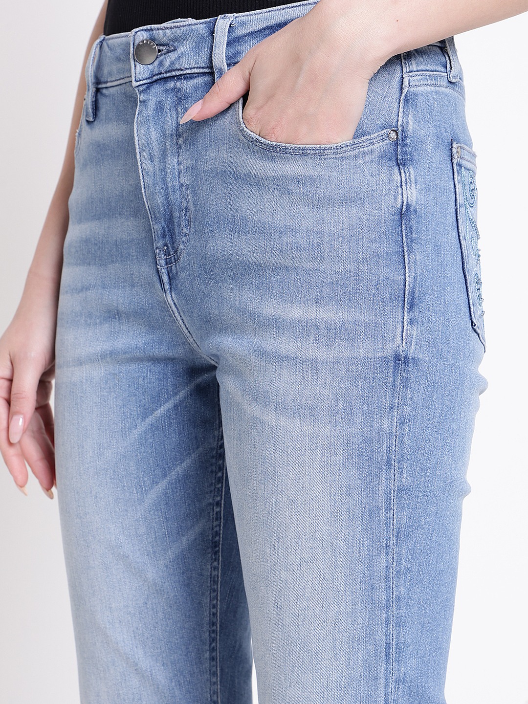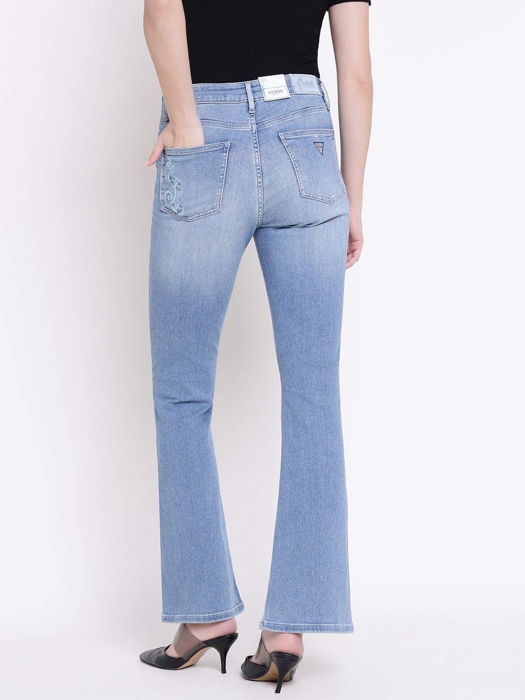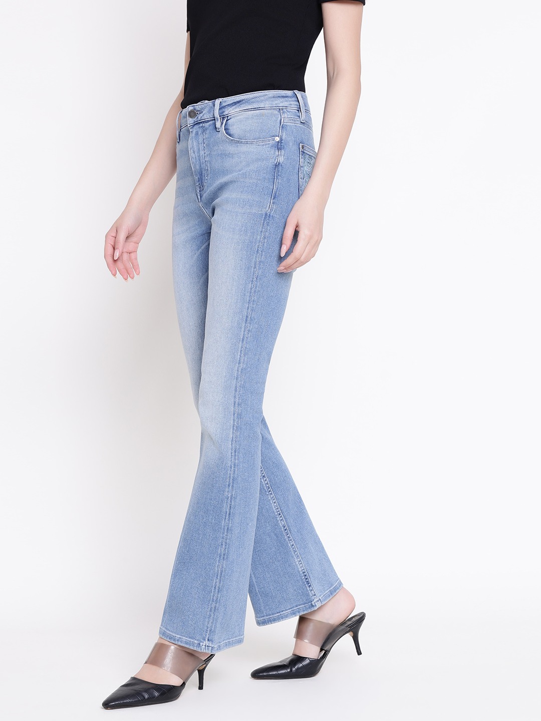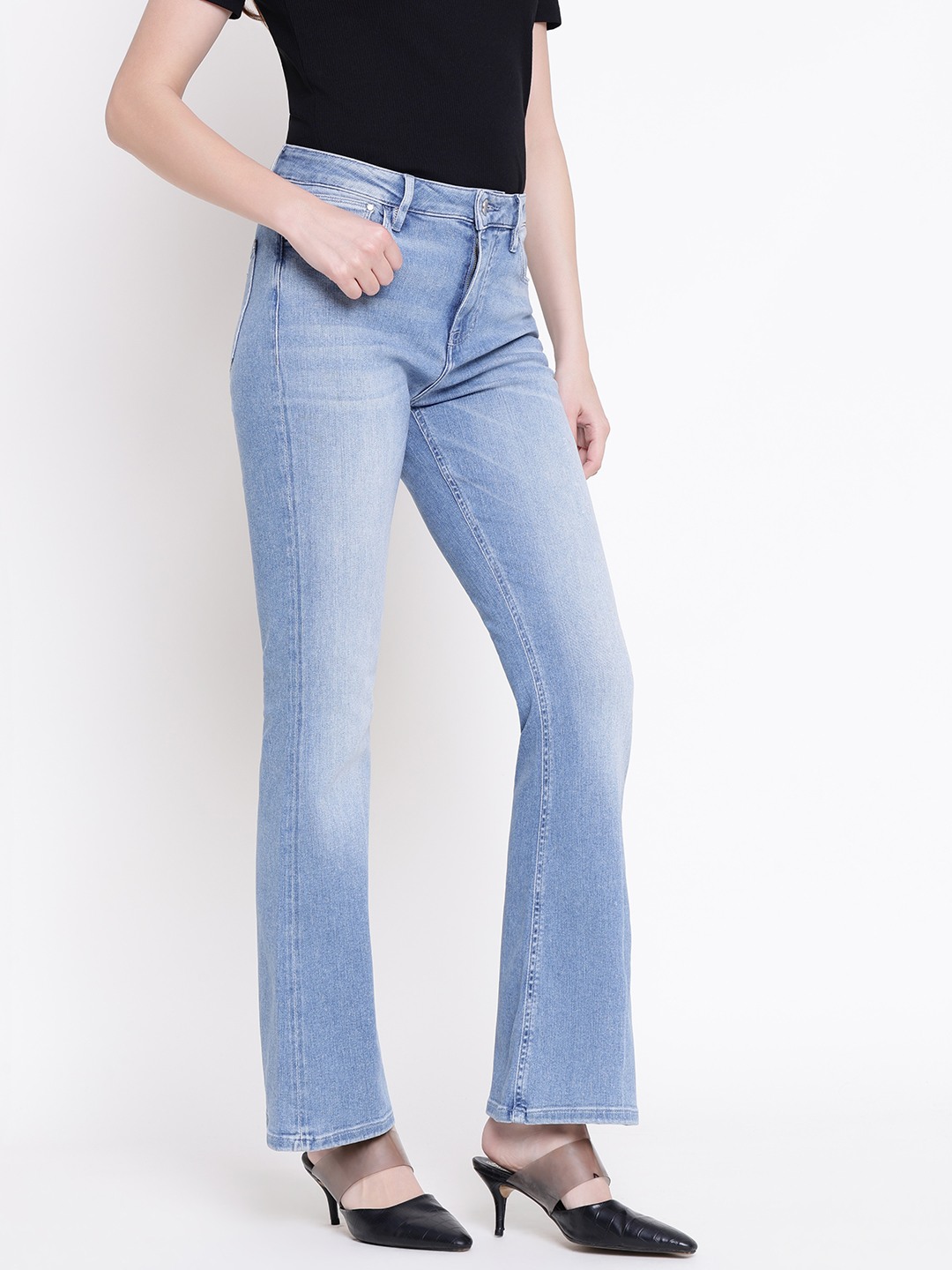 These sexy flare denim jeans in a vibrant blue color are perfect for women seeking a stylish and comfortable look. Featuring a high rise design, they offer a flattering fit that enhances your silhouette. The solid pattern adds a classic touch, while the bootcut fit provides a trendy silhouette. Made from soft cotton fabric, these jeans ensure all-day comfort and durability. The button closure adds a secure fit, making them ideal for casual outings or dressing up for a night out.