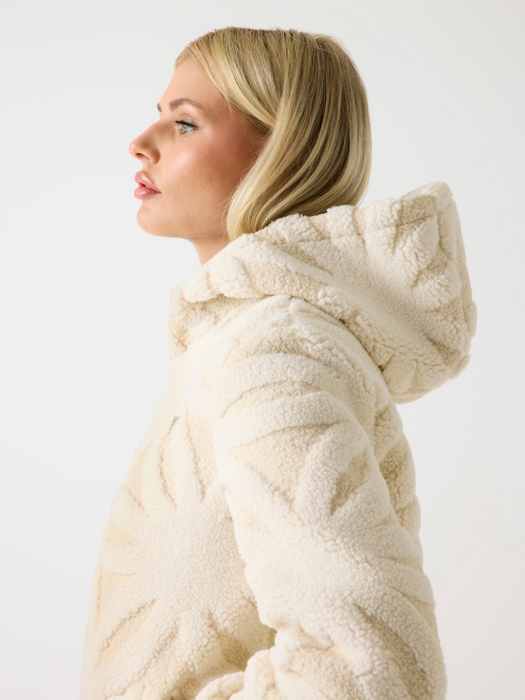 Elevate your style with our Cream Sherpa Jacket, designed for women who appreciate both comfort and fashion. This regular-fit jacket features a luxurious fleece pattern, offering a cozy feel perfect for chilly days. The long sleeves and hooded neck provide extra warmth, while the zip closure ensures easy wearability. Crafted from high-quality polyester fabric, this jacket promises durability and softness. Whether you're heading out for a casual day or a weekend adventure, this versatile piece is your go-to for effortless elegance and comfort.