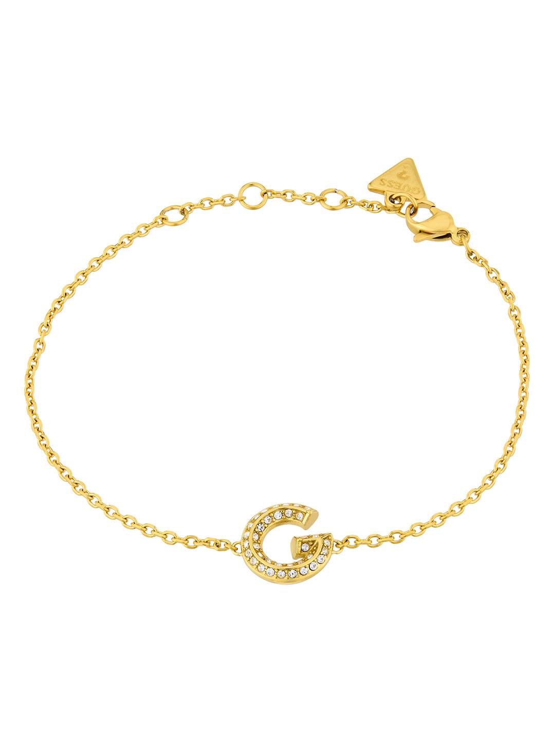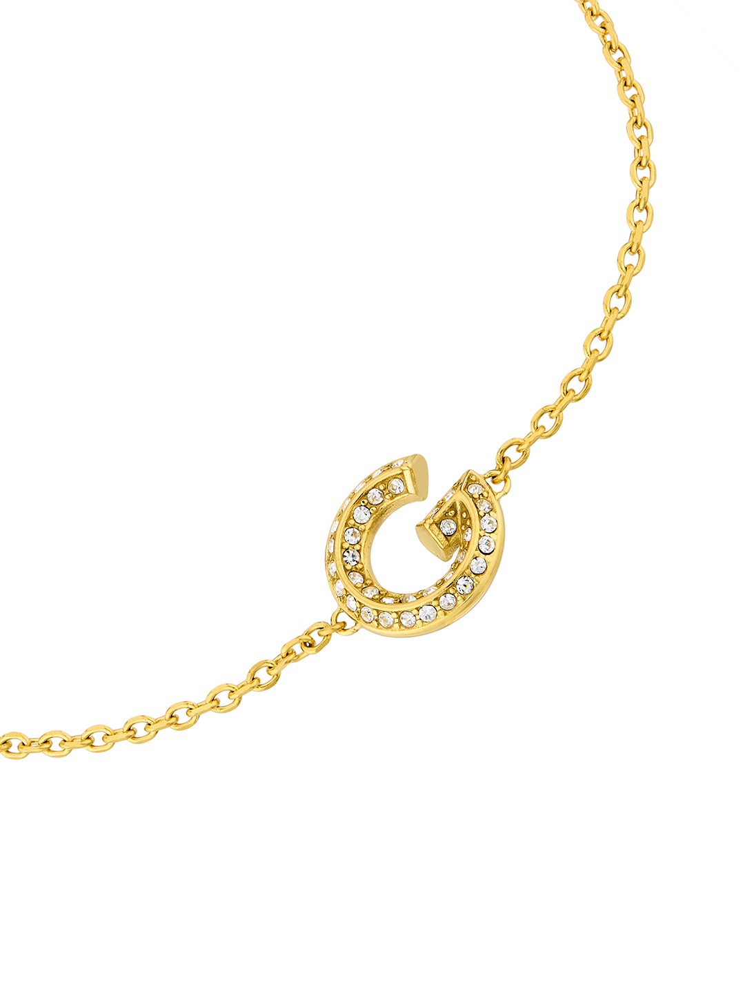 Guess Women G Crystal Gold Pleated Steel Bracelet