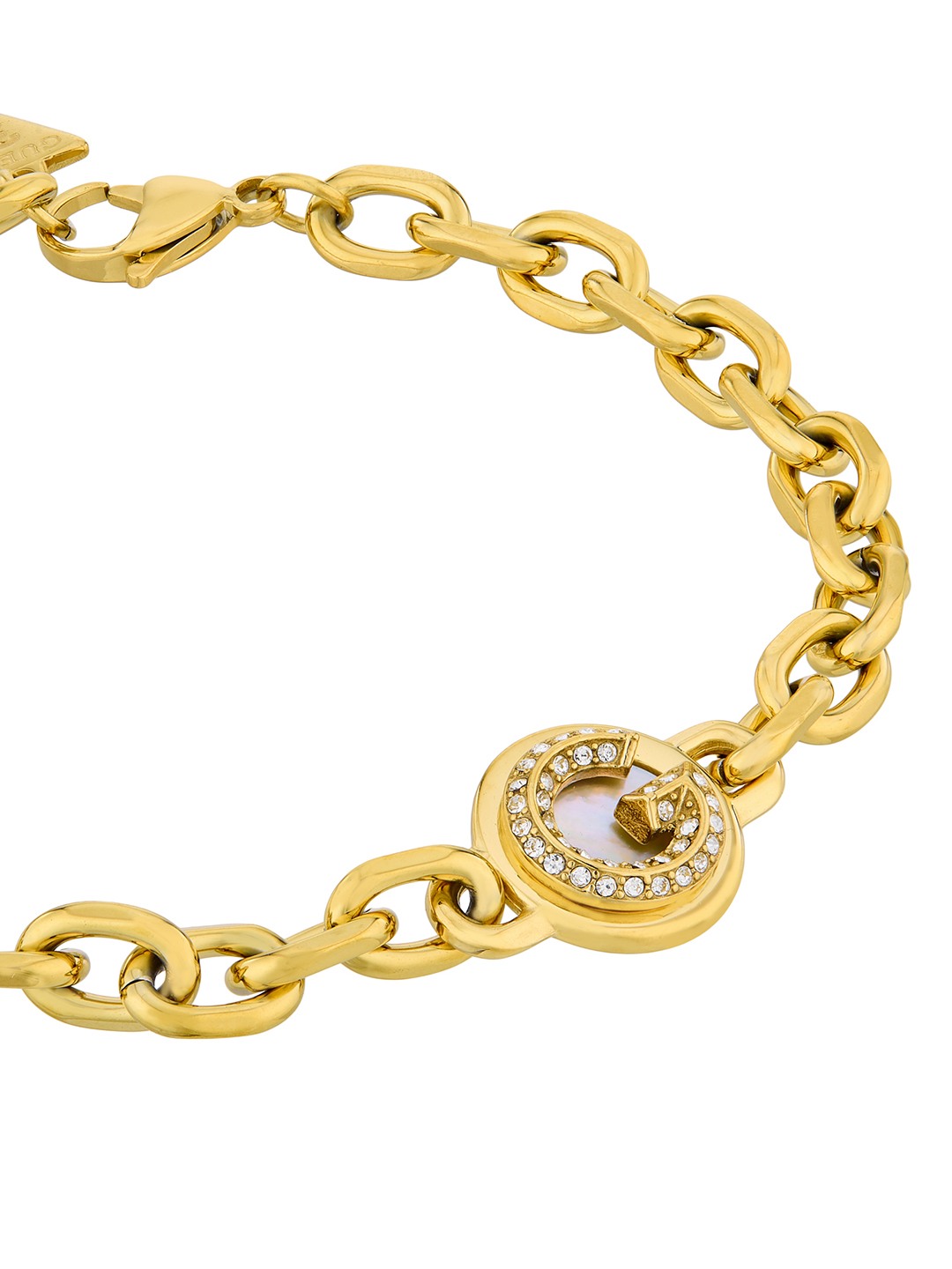 Guess Women G Crystal Gold Pleated Steel Bracelet