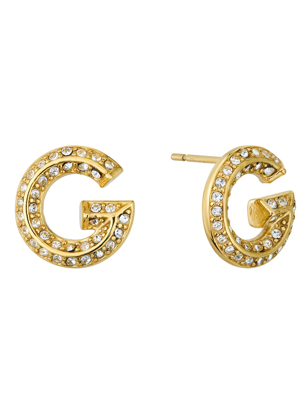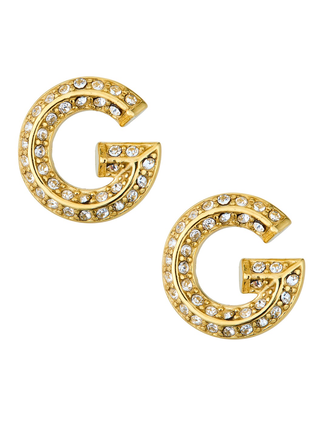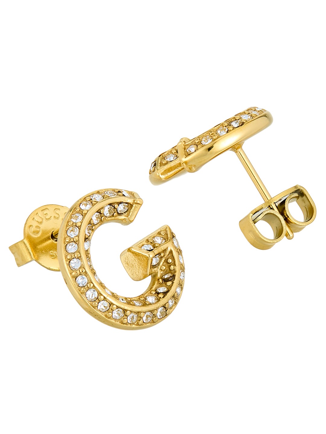Guess Women G Crystal Gold Pleated Steel Studs Earrings