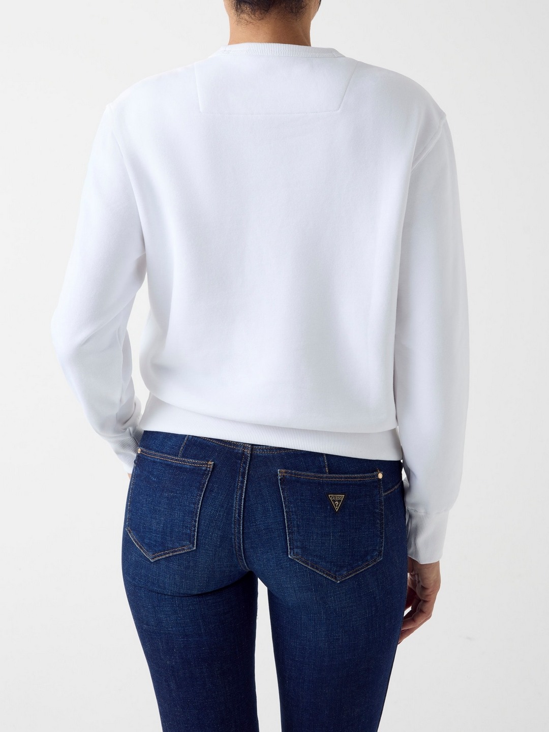 Elevate your casual wardrobe with our chic white sweatshirt, designed for women who appreciate style and comfort. This regular-fit piece features a striking graphic pattern that adds a modern edge to any outfit. Crafted from a premium cotton blend fabric, it ensures a soft, breathable feel for all-day wear. The long sleeves and classic round neck offer a timeless silhouette, while the convenient pull-on closure makes it easy to wear. Perfect for layering or as a standalone piece, this sweatshirt is a versatile addition to your collection.