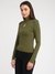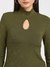 Green Self Design Keyhole Neck Full Sleeves Top