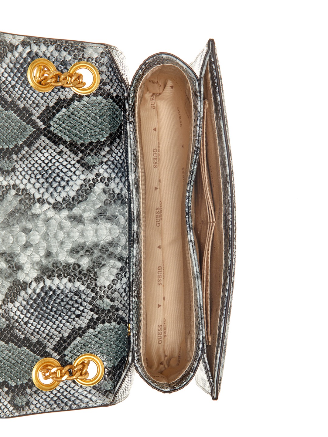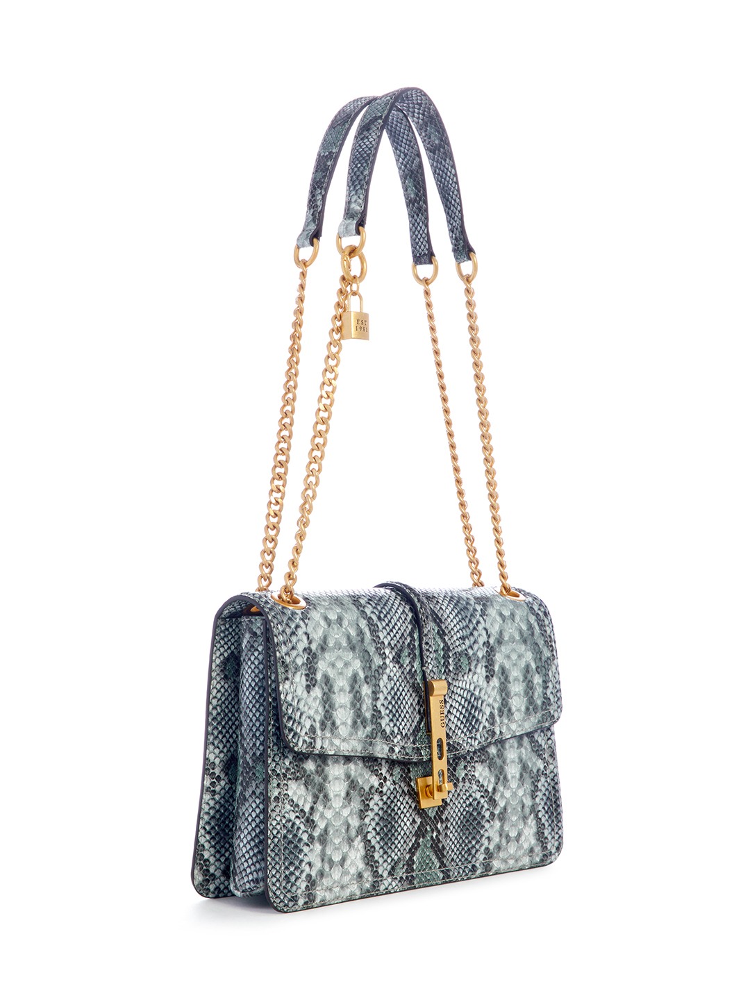 Guess Women Grey Printed Convertible Crossbody with Twist Lock Closure