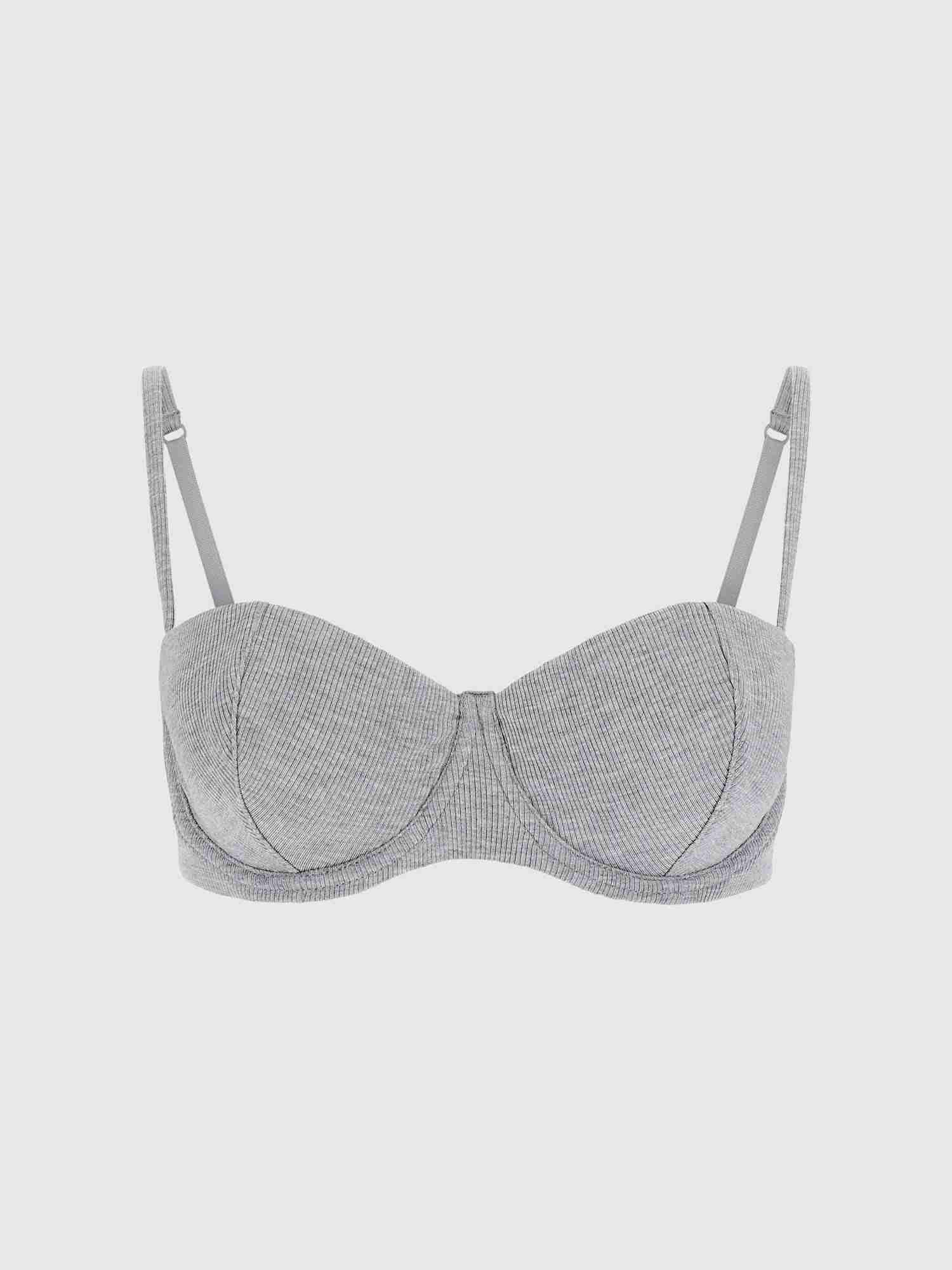 The Tessa Wired Balconette Bra by Guess redefines everyday luxury with its eco-conscious 92% Modal and 8% Elastane/Spandex skin-toned ribbed construction. In a sophisticated medium grey, this padded, underwired bra delivers a half-coverage balconette lift with adjustable straps and a secure Hook and Eye closure. The smooth, solid fabric lies flat against the skin for an invisible finish under clothing. Sustainably crafted for long-wearing comfort and effortless support.