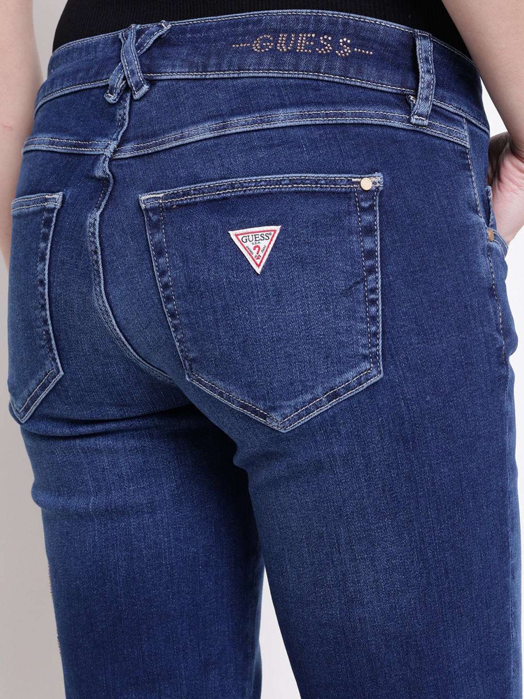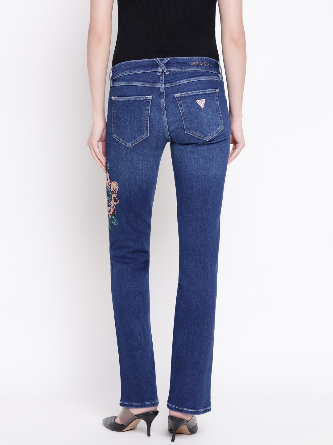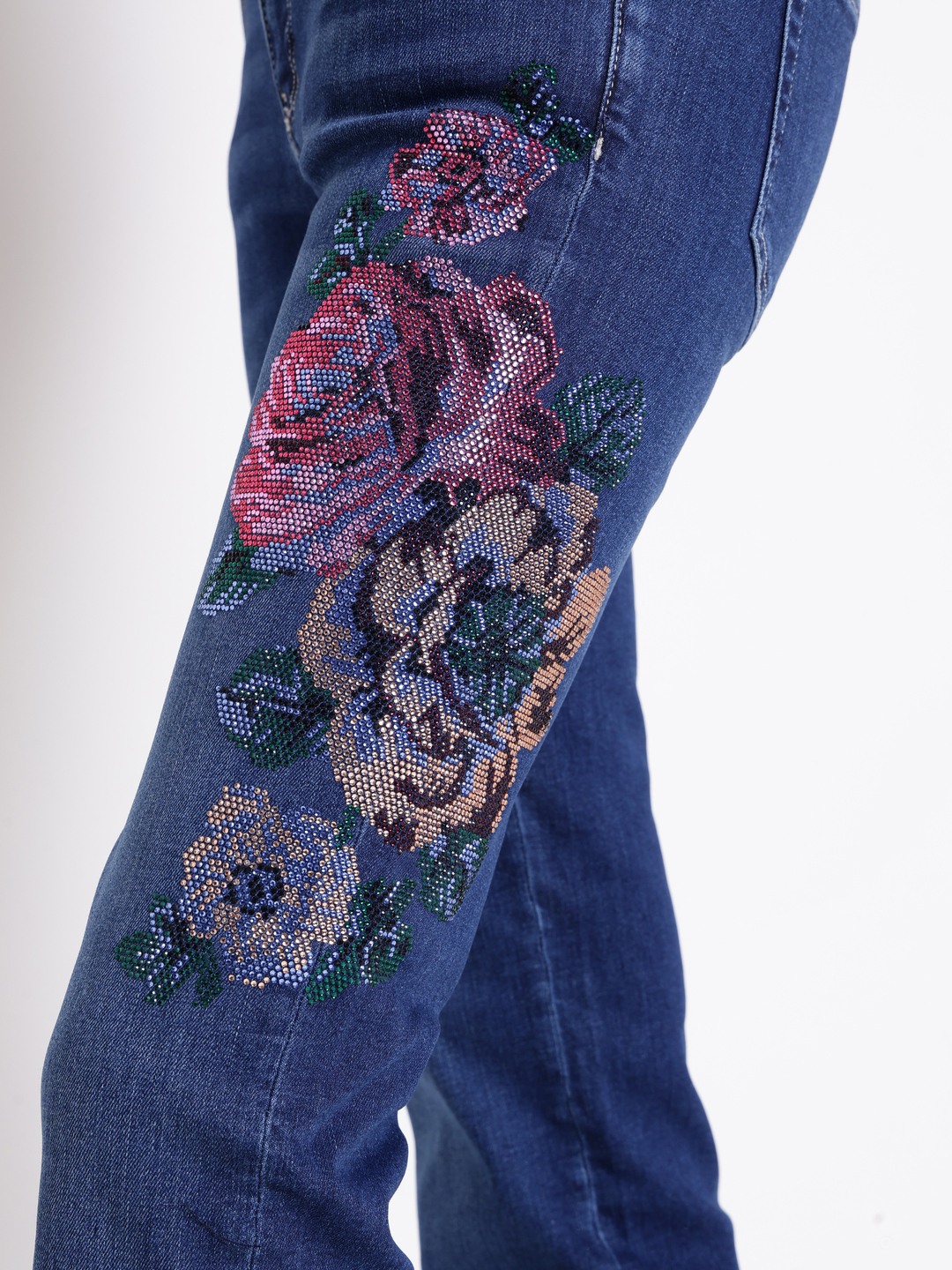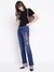 Hermosa denim jeans in a vibrant blue color offer a stylish flare fit that enhances your silhouette. Crafted from comfortable cotton fabric, these high-rise jeans provide a flattering and secure fit. The embellished pattern adds a touch of elegance and uniqueness to your look. Featuring a classic button closure, they are easy to wear and versatile for various occasions. Perfect for women who want a blend of comfort and fashion, these jeans are a must-have addition to your wardrobe.