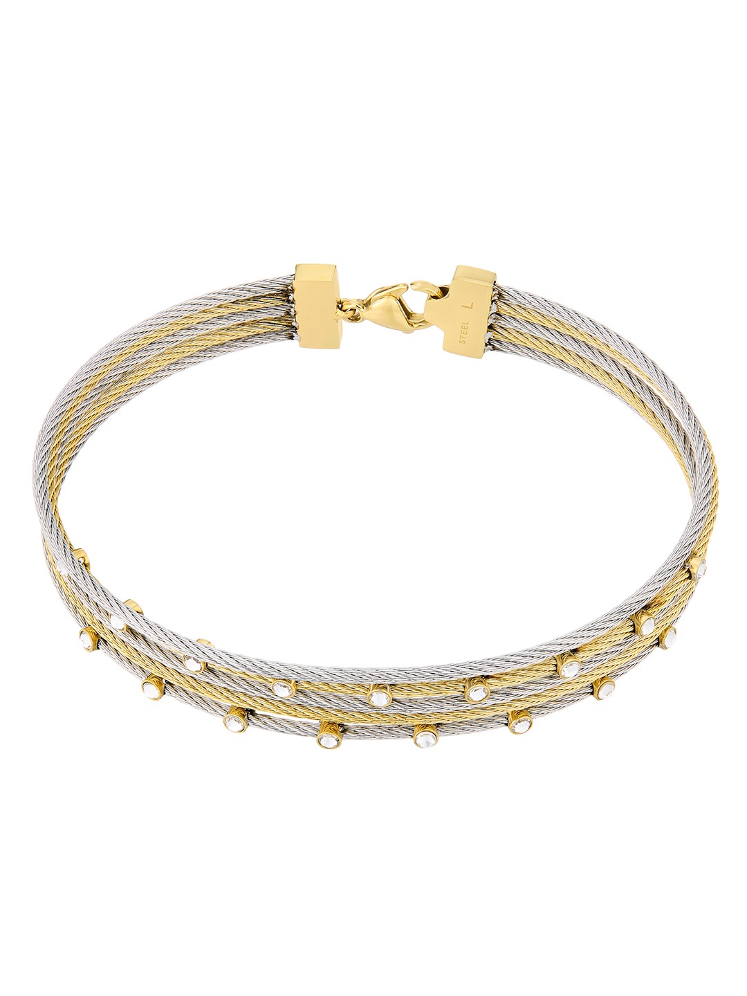Guess Women Kalybe Silver & Gold Pleated Steel Bracelet