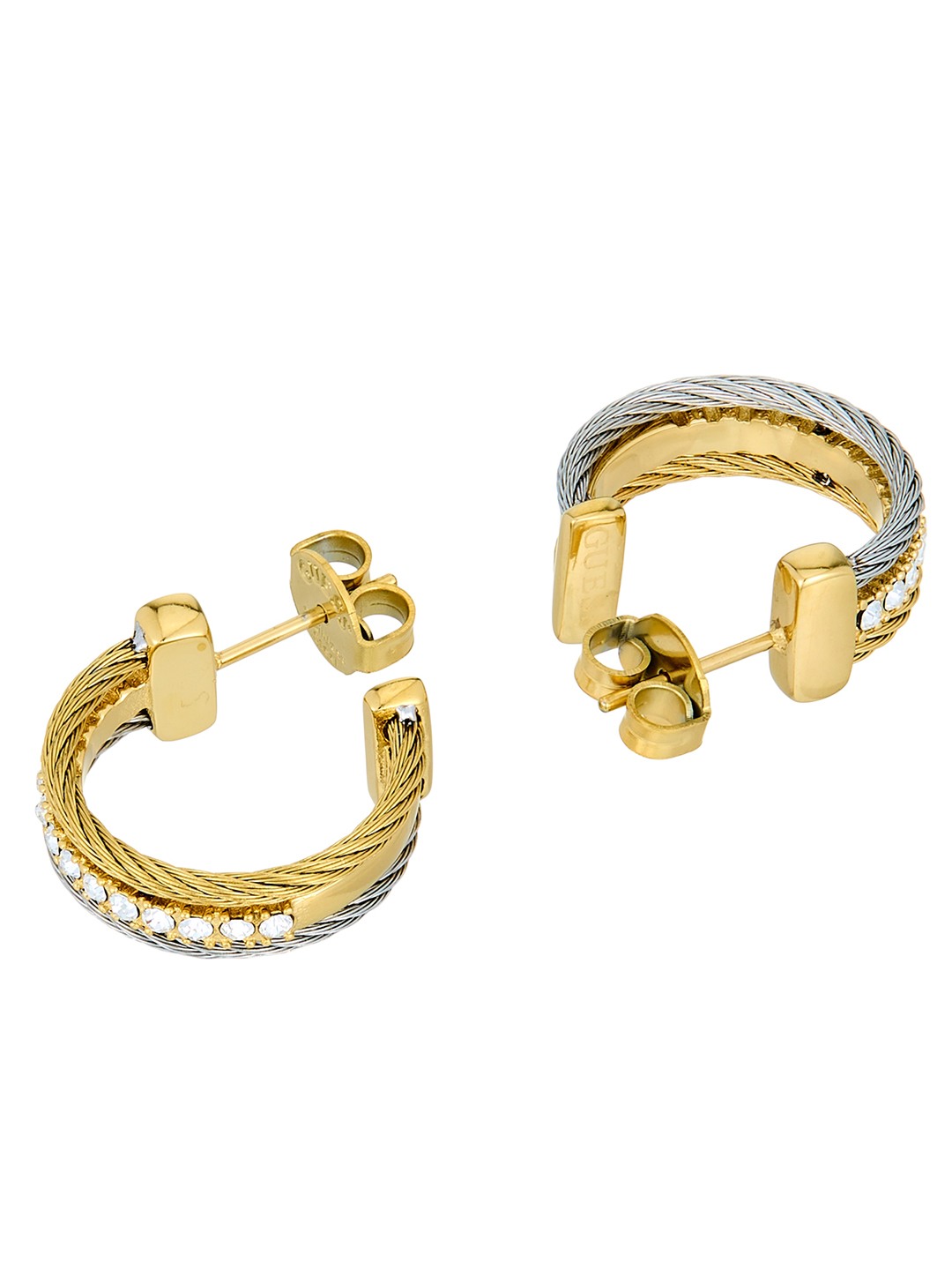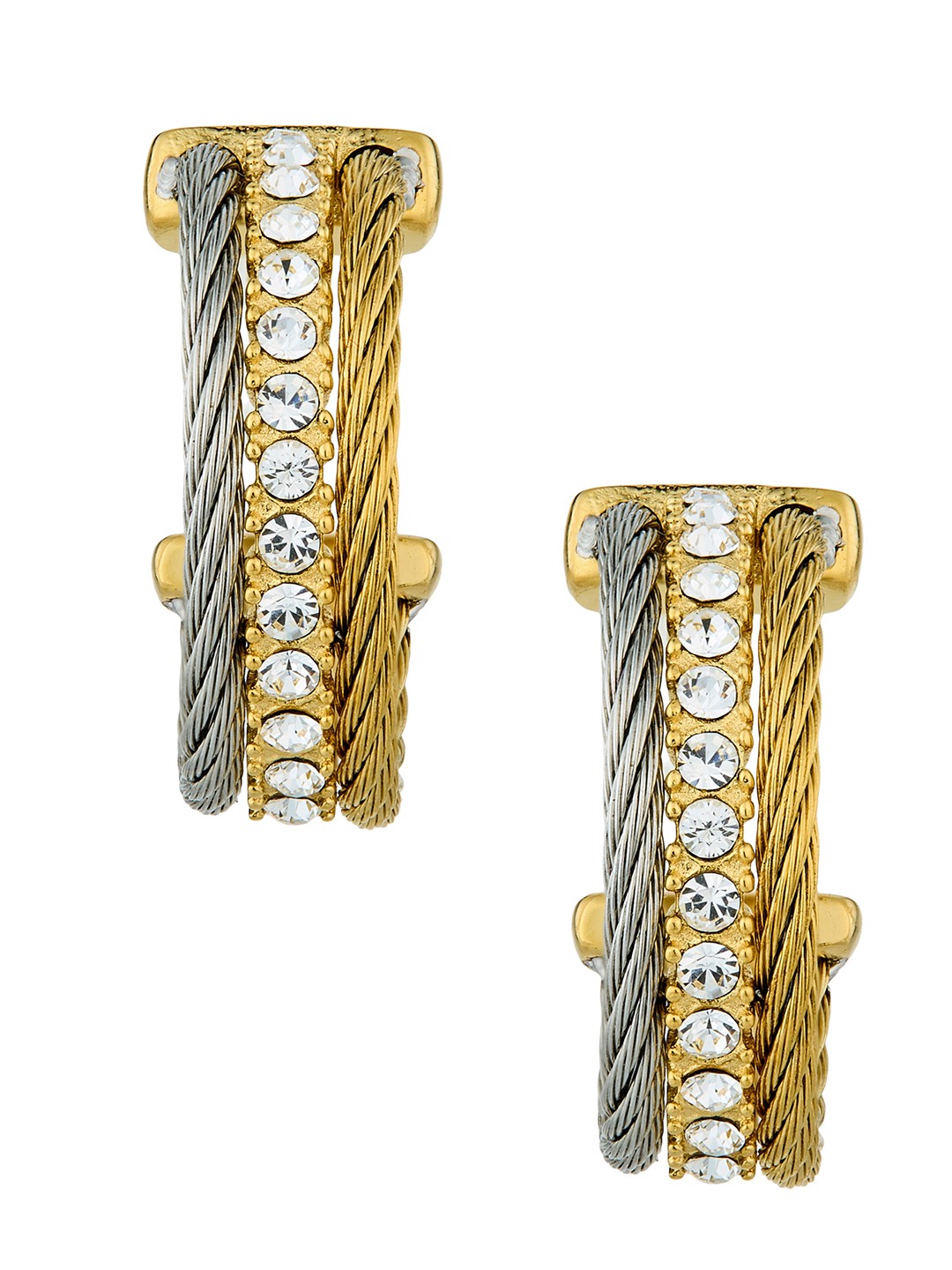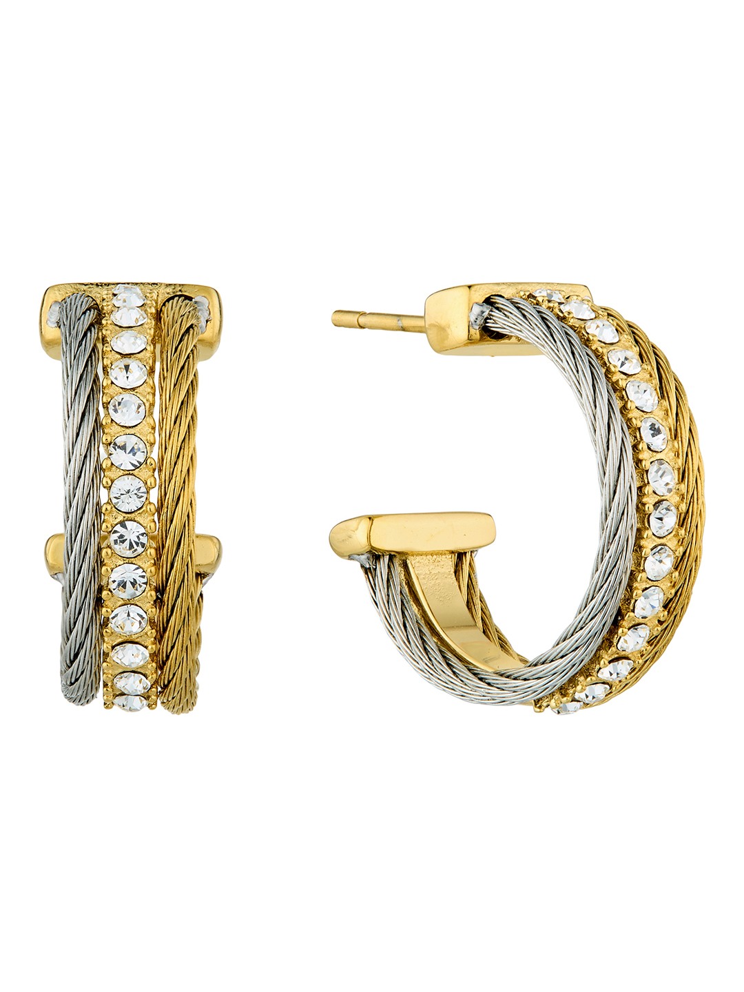 Guess Women Kalybe Silver & Gold Pleated Steel Half Hoop Earrings