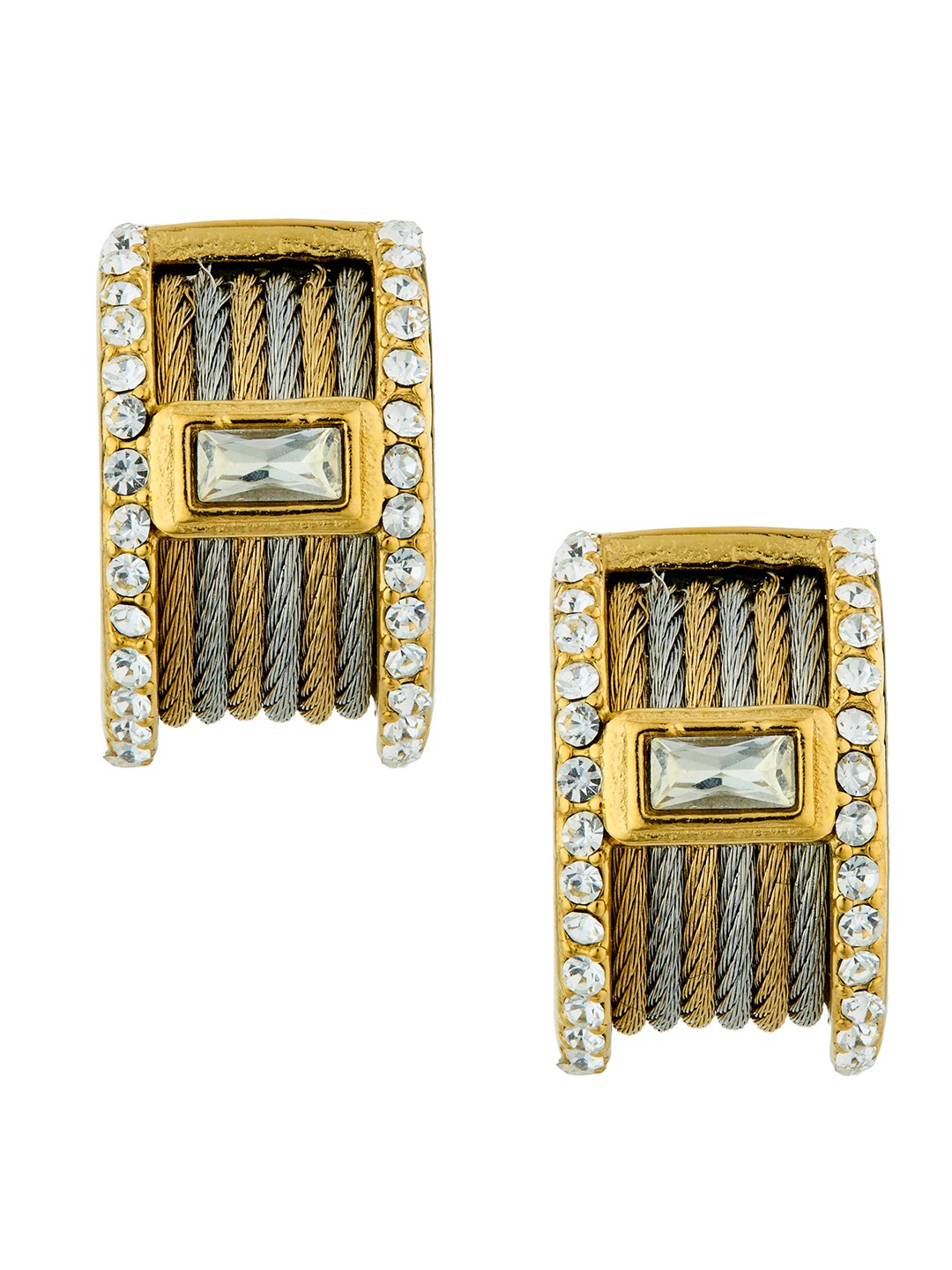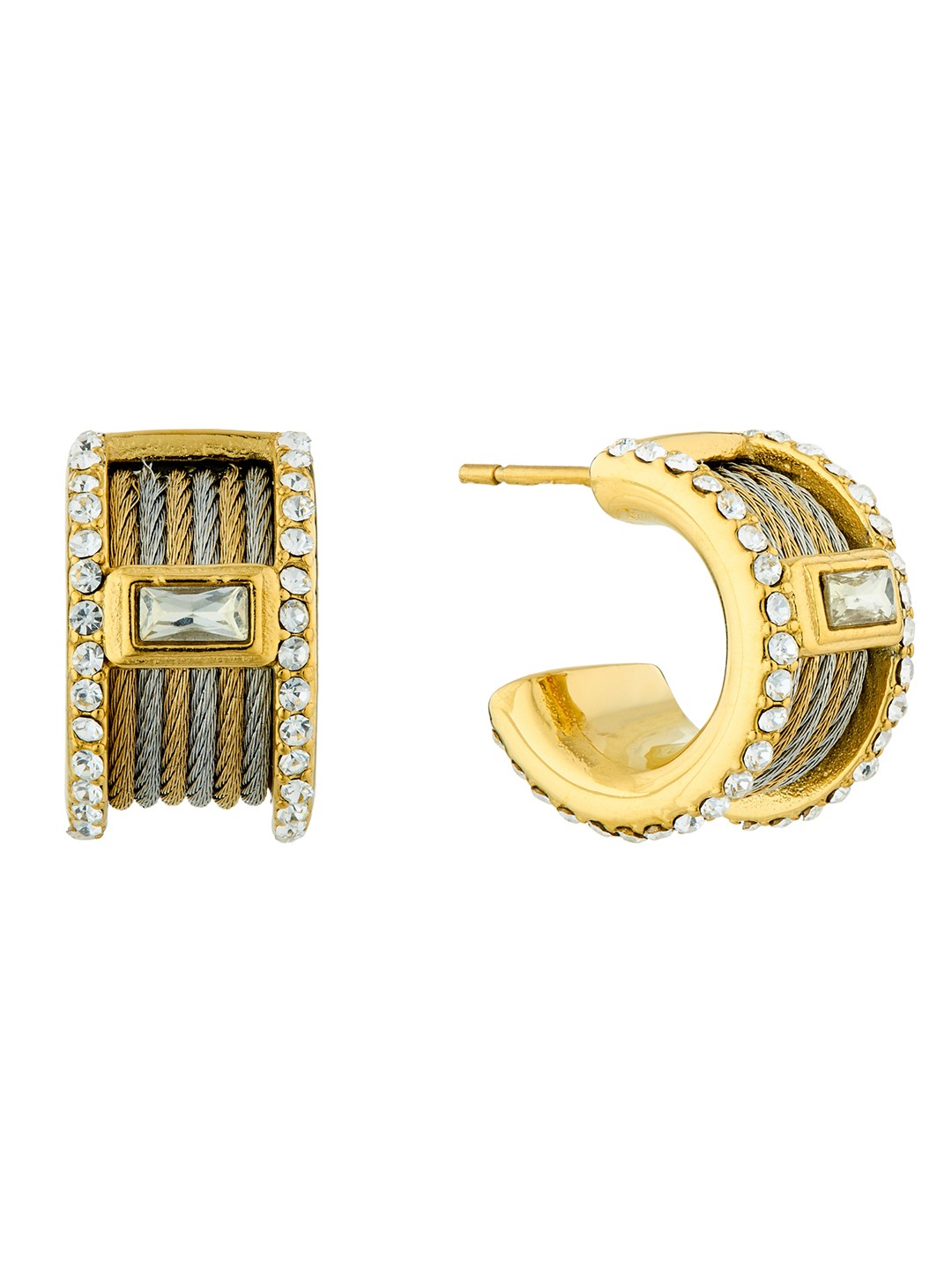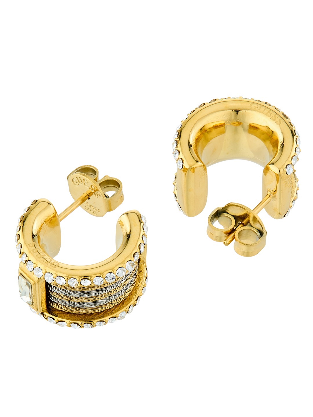 Guess Women Kalybe Silver & Gold Pleated Steel Hoop Earrings