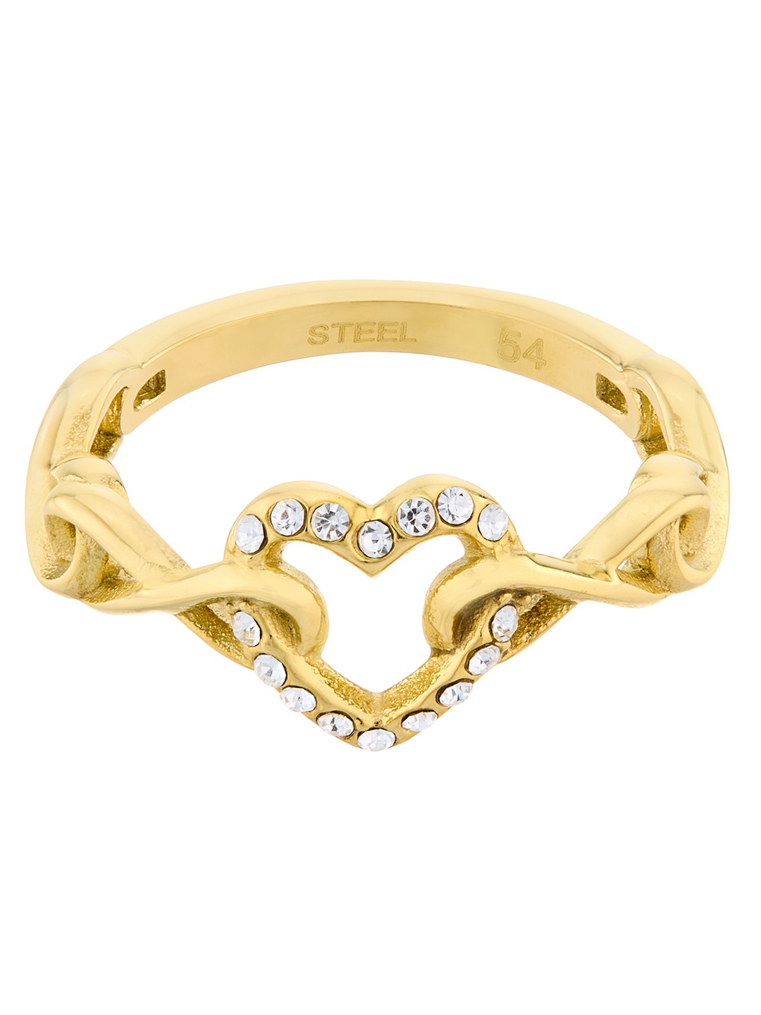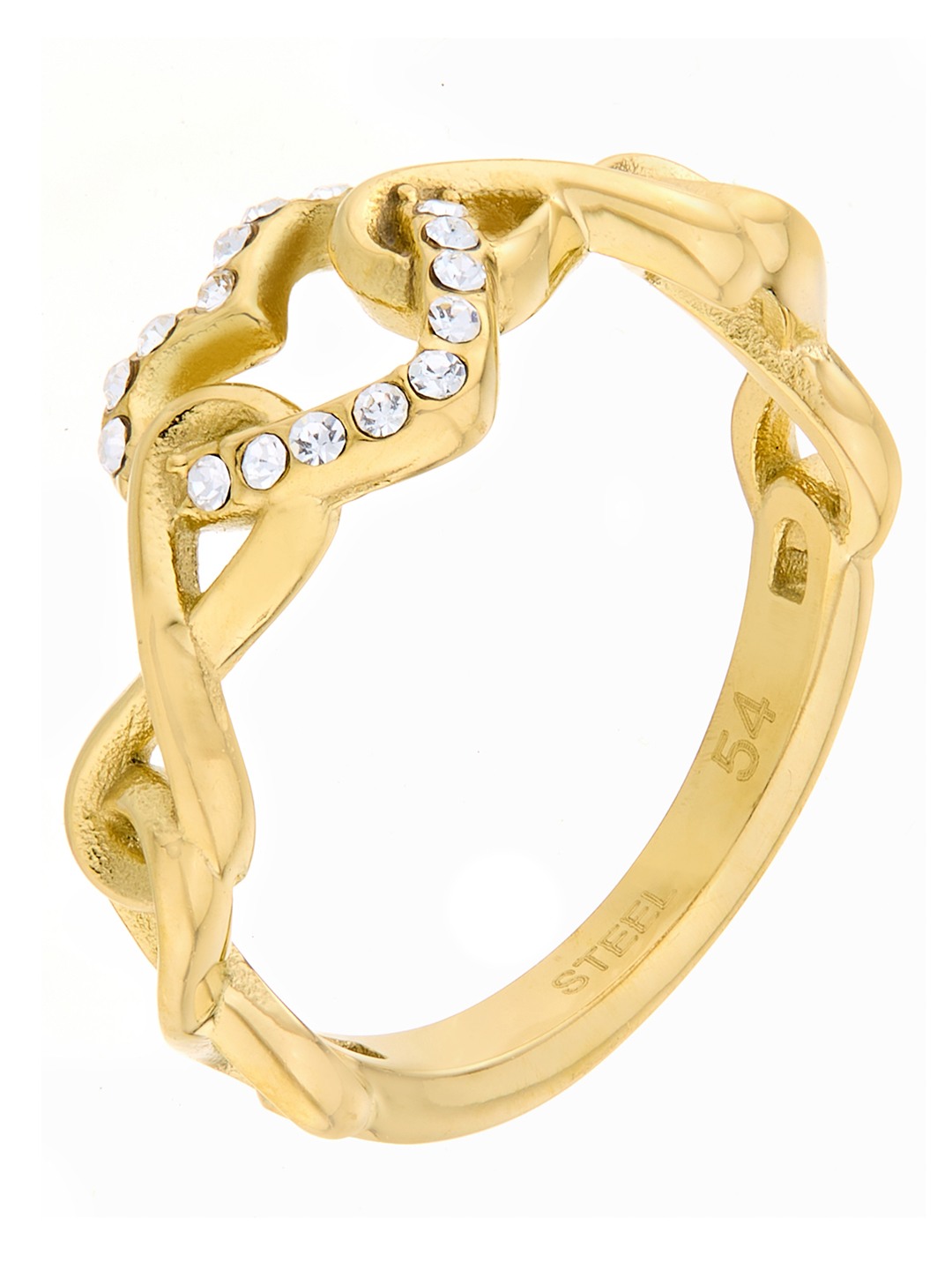 Guess Women L.O.V.E. Gold Pleated Steel Ring