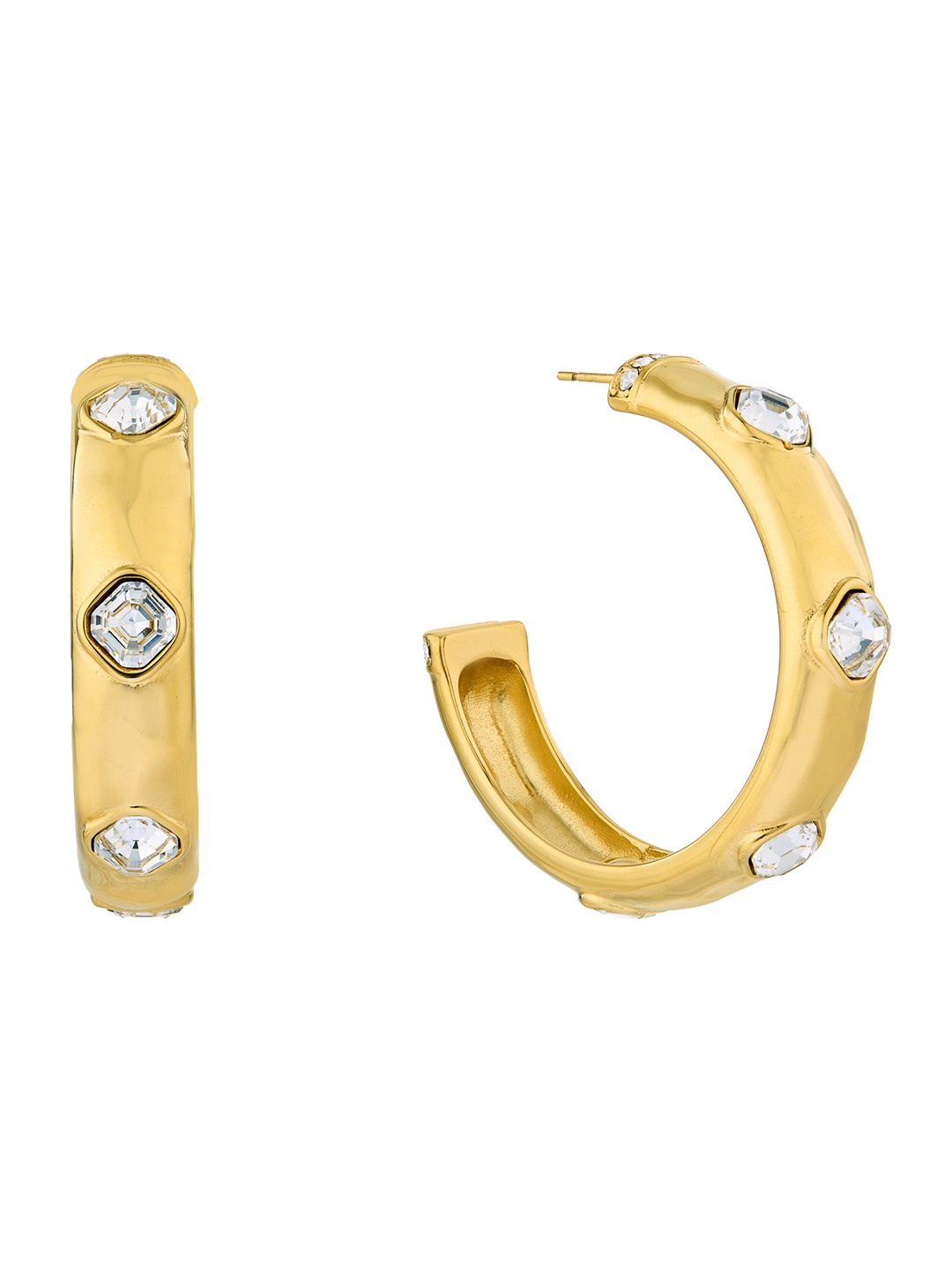 Guess Women Mamounia Gold Pleated Steel Half Hoop Earrings