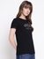 The margot t-shirt in black offers a comfortable regular fit with a stylish printed pattern. Crafted from soft cotton fabric, it ensures all-day comfort and breathability. Featuring half sleeves and a round neck, it provides a classic yet trendy look suitable for casual outings or relaxed gatherings. The pull-on closure makes it easy to wear and remove. Perfect for women seeking a versatile and fashionable addition to their wardrobe, this t-shirt combines comfort with style effortlessly. Elevate your everyday look with the margot t-shirt.