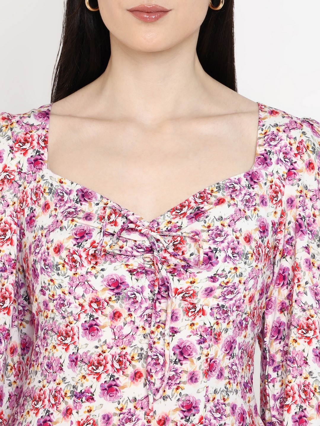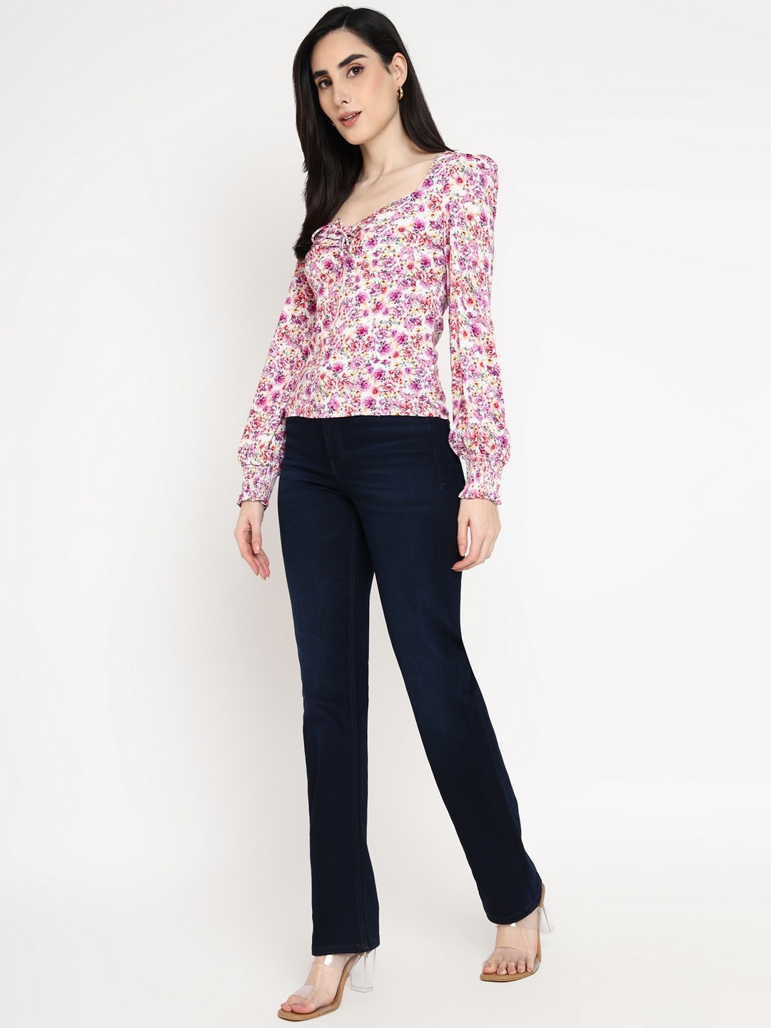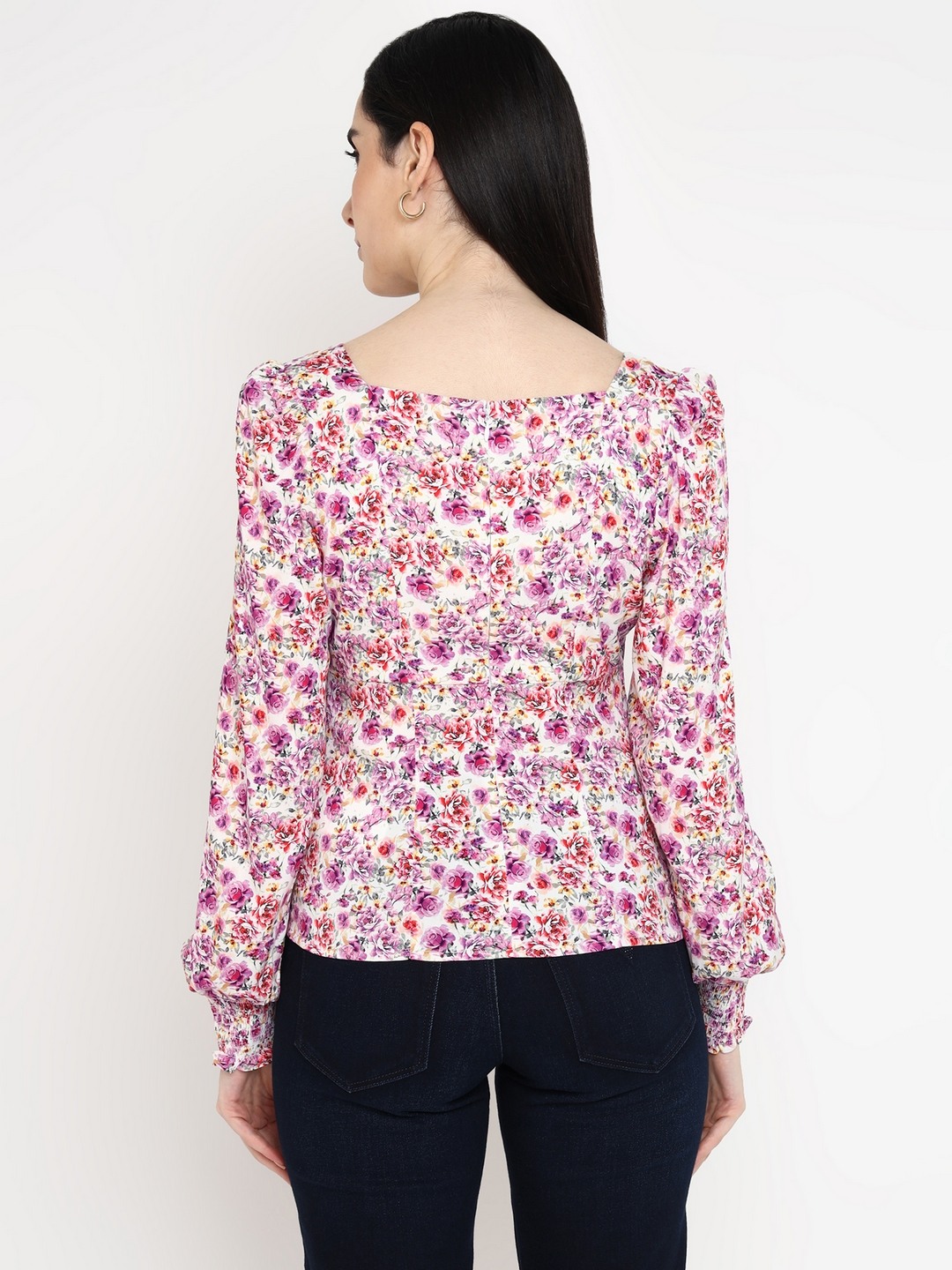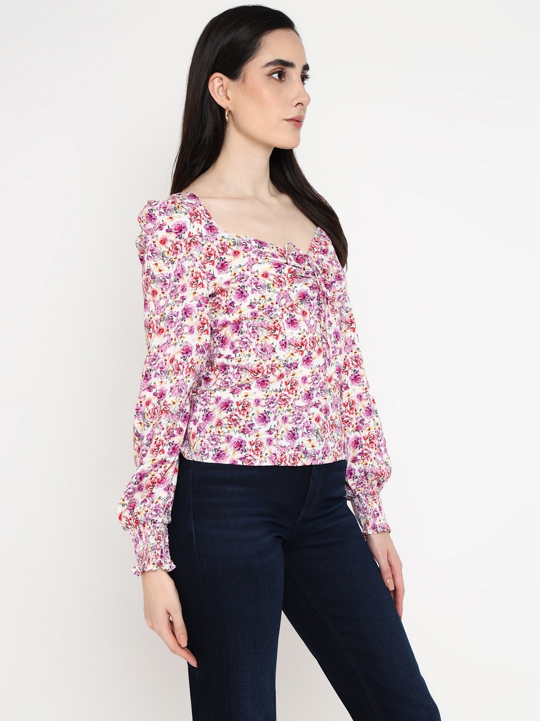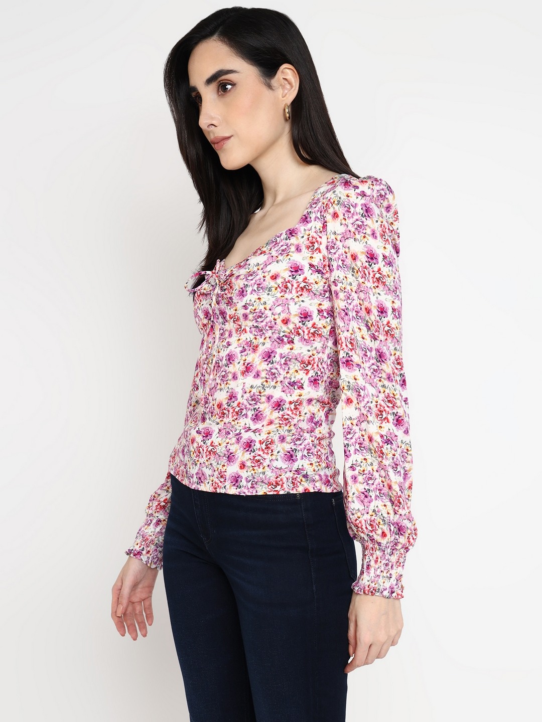 Multi-Color Printed Sweatheart Neck Full Sleeves Top