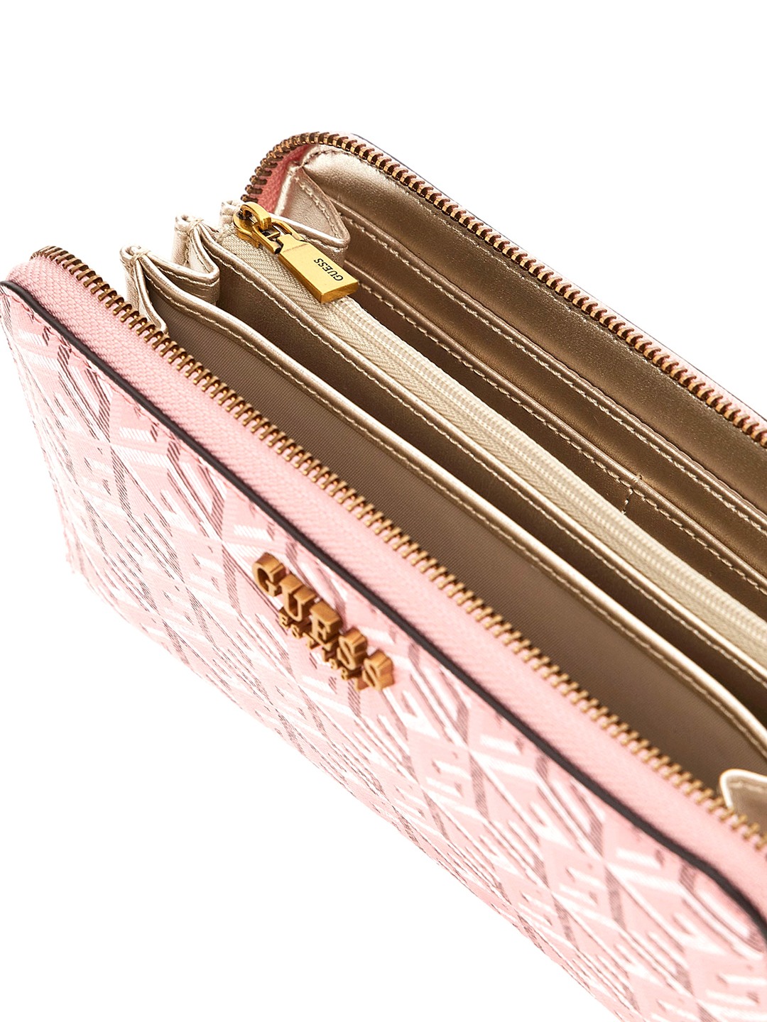 Guess Women Pink Printed Zip Around Wallet with Zip Closure