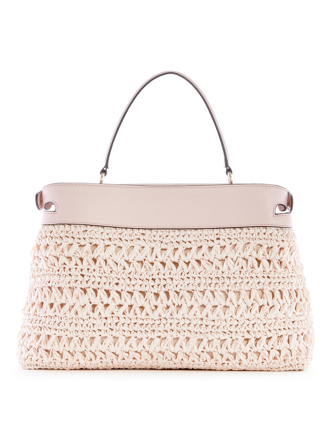 Guess Women Pink Self-Design Satchel Bag with Magnetic Button Closure