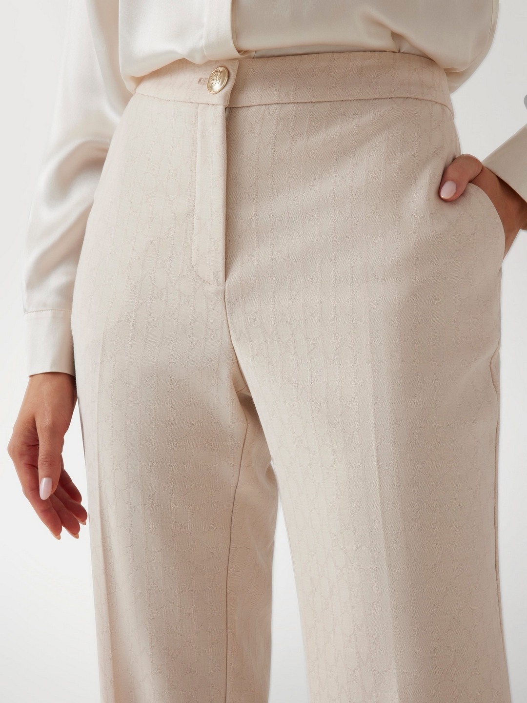 Elevate your formal wardrobe with these chic flat front trousers in a vibrant pink hue. Designed for the modern woman, these trousers feature a regular fit that offers comfort and style. The high-rise waist provides a flattering silhouette, while the button and zip closure ensures a secure fit. Crafted from a durable polyester blend, these trousers are perfect for all-day wear. The unique typographic pattern adds a touch of sophistication, making them ideal for both office settings and special occasions.