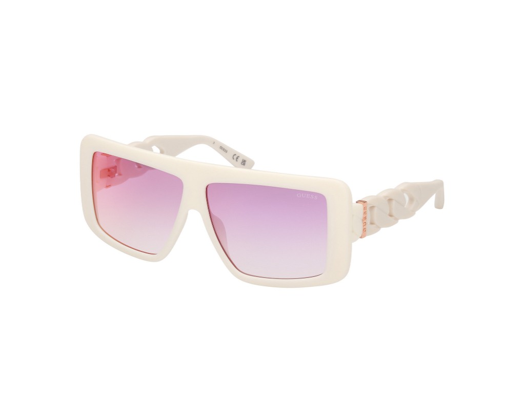 Discover the chic allure of Guess square sunglasses, featuring a sleek matt white polycarbonate frame and full rim design. The violet mirror-violet gradient lenses add a touch of sophistication, perfect for the modern woman seeking a trendy white tone. Elevate your style with these must-have accessories.