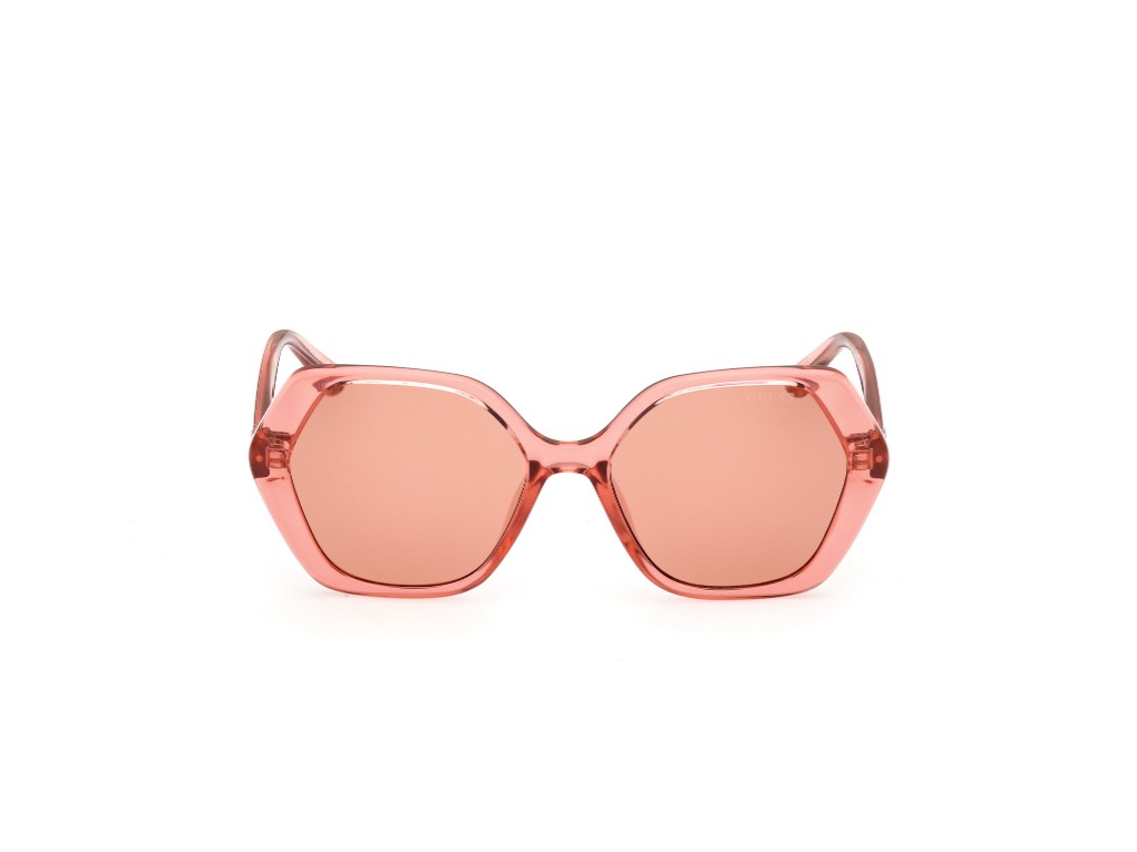 Discover the chic allure of Guess hexagon sunglasses, featuring a full rim frame in shiny crystal pink polycarbonate. Designed for women, these trendy sunglasses boast solid burgundy lenses, offering a perfect blend of style and sophistication. Elevate your look with this modern accessory.