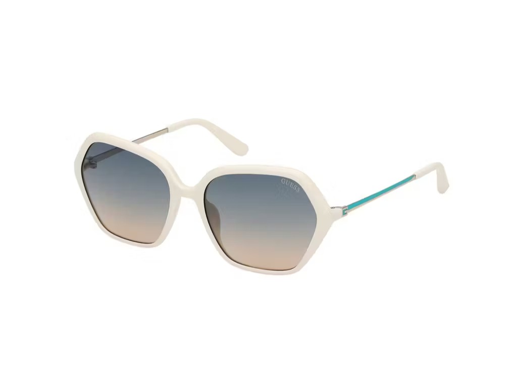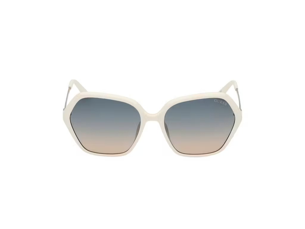 Discover the chic allure of Guess hexagon sunglasses, featuring a sleek shiny white polycarbonate frame and full rim design. The trendy hexagon shape is complemented by stunning blue to pink gradient lenses, offering a stylish touch for the modern woman. Elevate your look with these fashion-forward sunglasses, perfect for any occasion.