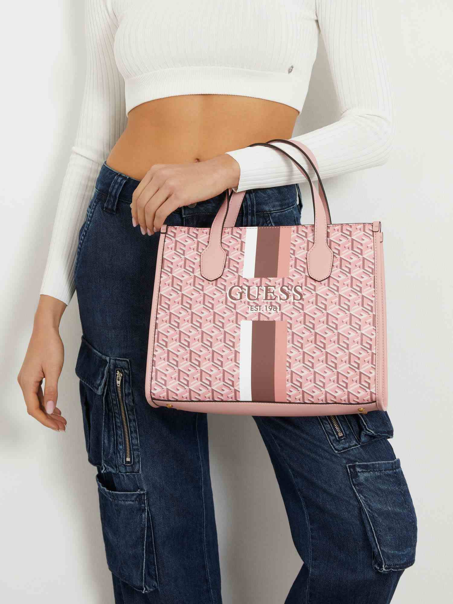Guess Women Printed Pu Silvana 2 Compartment Tote Bag