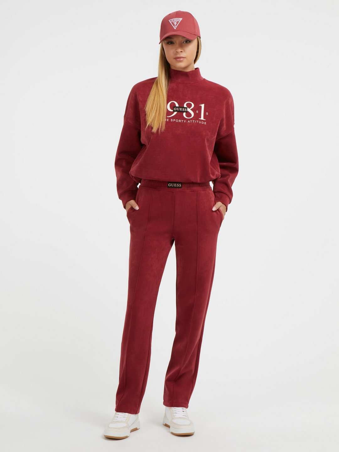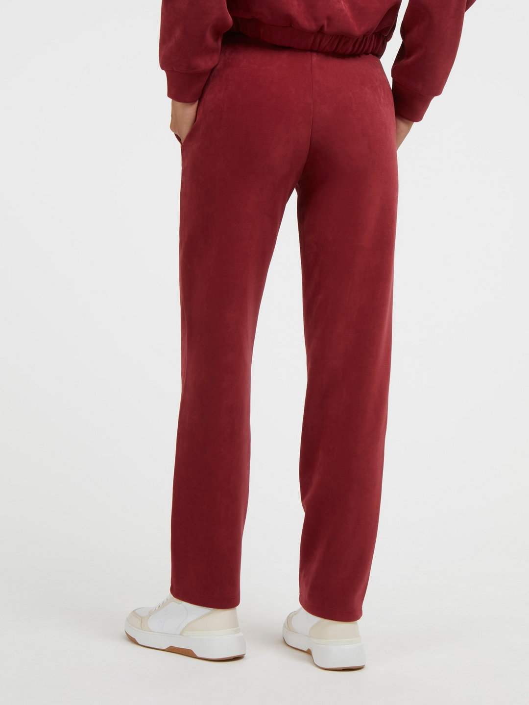 • Women Beet Juice Red Solid Aleta Straight Faux Suede Pants