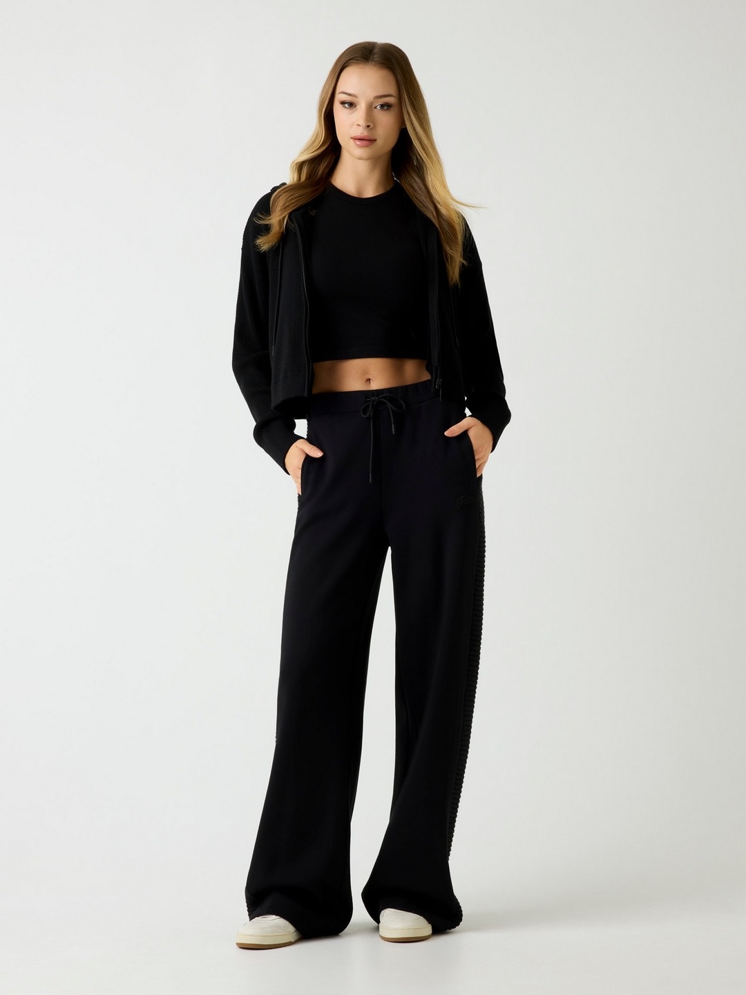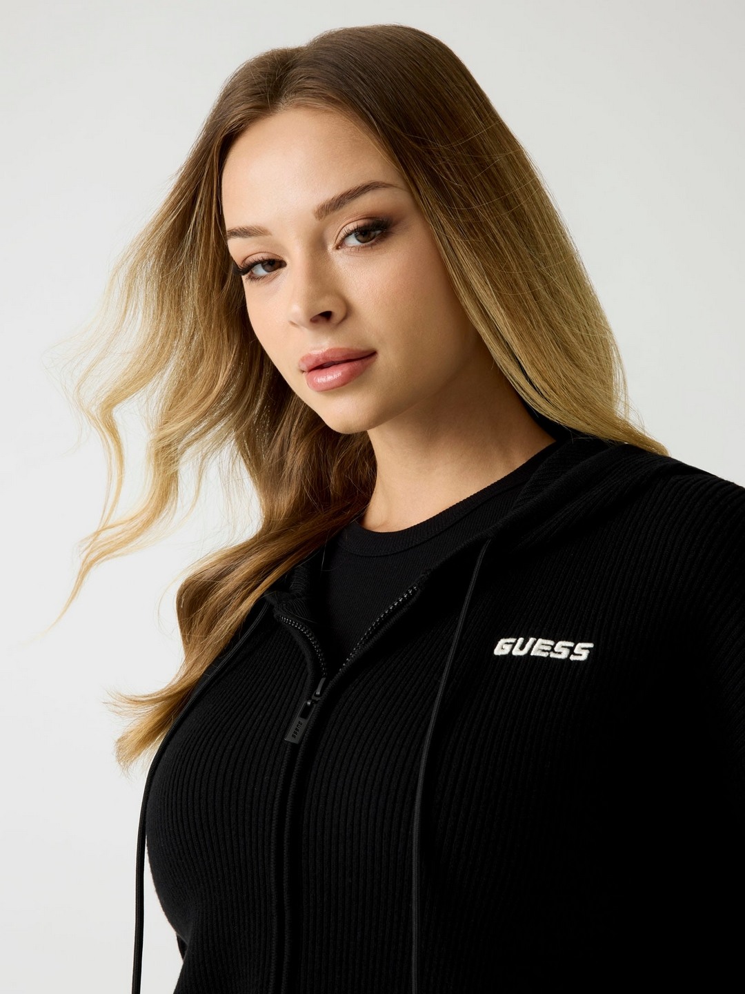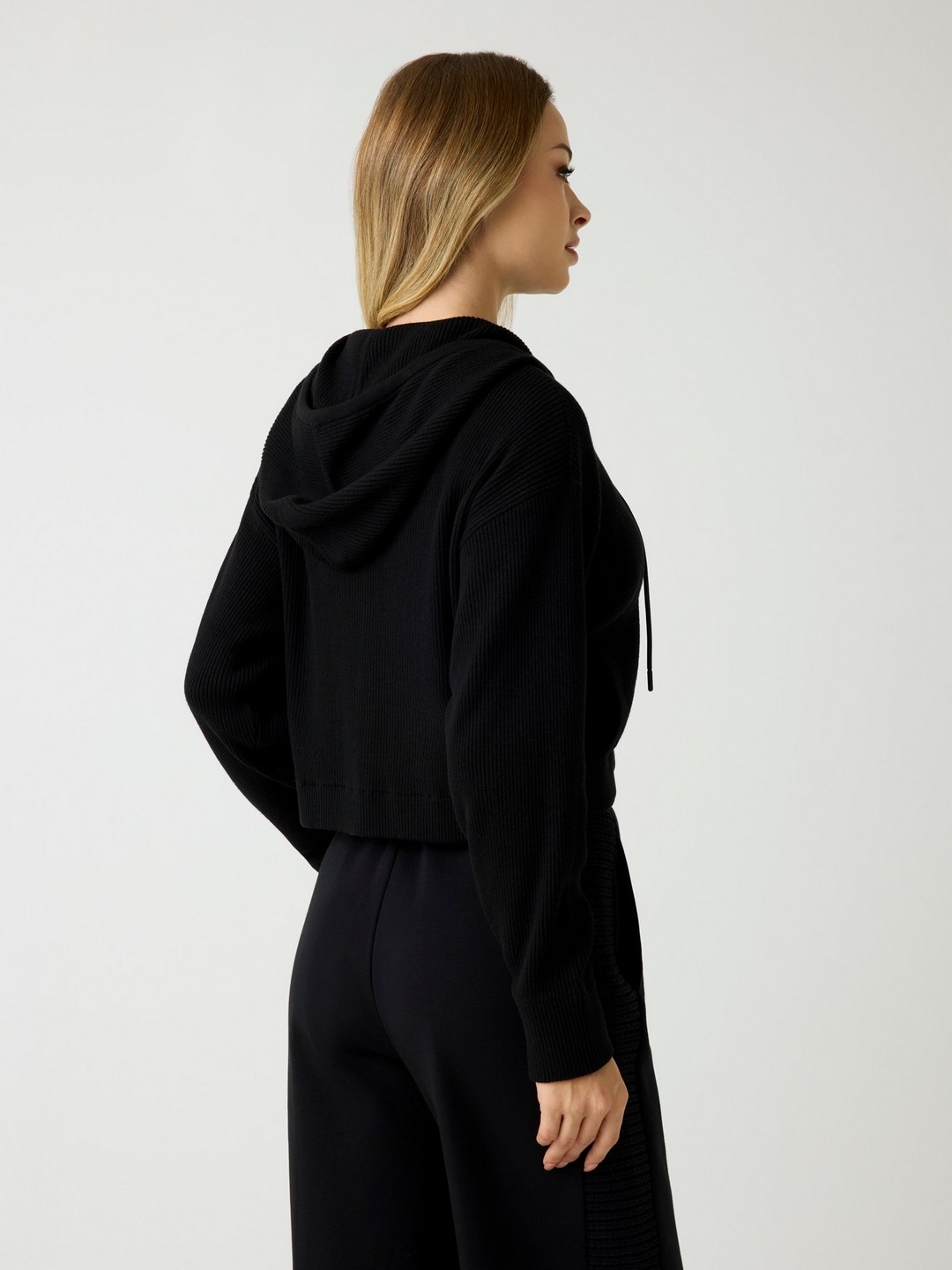 Elevate your wardrobe with our chic black cardigan, designed for the modern woman. Crafted from a premium polyester blend, this ribbed pattern cardigan offers both style and comfort. Featuring long sleeves and a cozy hood, it's perfect for layering in any season. The convenient zip closure ensures easy wear, making it a versatile addition to your collection. Whether you're dressing up for a night out or keeping it casual, this cardigan is your go-to piece for effortless elegance and warmth.