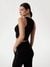 Elevate your wardrobe with our chic black knitted crop top, designed for the modern woman. Crafted from a luxurious viscose blend, this top offers a soft, comfortable fit. The ribbed pattern adds a touch of texture, while the sleeveless design and round neck create a timeless silhouette. Perfect for any occasion, this versatile piece features a convenient pull-on closure, making it easy to style with your favorite high-waisted jeans or skirts. Embrace effortless elegance with this must-have staple.