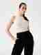 Elevate your wardrobe with our chic knitted crop top in a versatile beige hue. Crafted from a luxurious viscose blend, this top offers a soft, breathable feel perfect for any season. The ribbed pattern adds a touch of texture, while the sleeveless design and round neck create a flattering silhouette. With its easy pull-on closure, this crop top is both stylish and convenient, making it an essential piece for effortless dressing. Pair it with high-waisted jeans or a skirt for a trendy, sophisticated look. Ideal for casual outings or a night out.