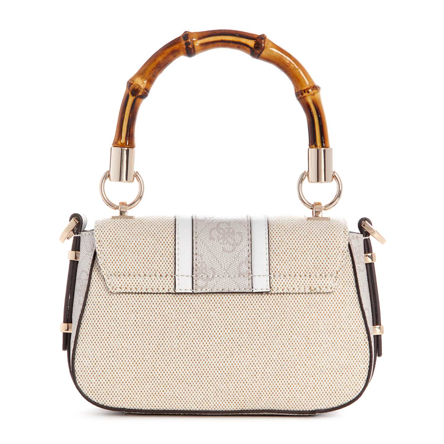 Guess Women's Beige Cotton Polyester Blend Textured Shoulder Bag