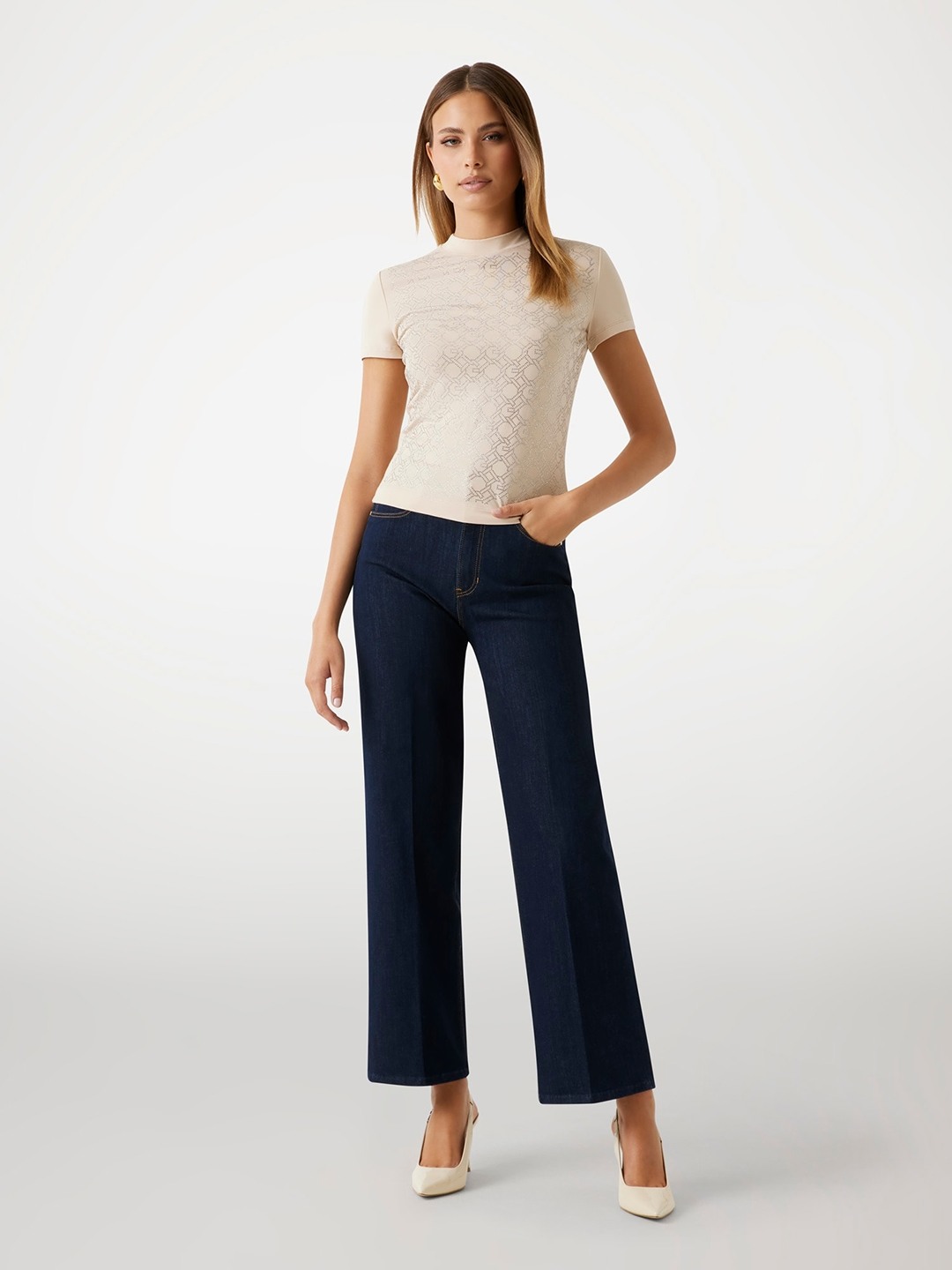 Elevate your wardrobe with this chic beige slim-fit T-shirt, featuring a modern geometric pattern. Crafted from a soft cotton blend, it offers a comfortable, breathable feel. The short sleeves and classic crew neck provide a timeless look, while the slip-on closure ensures effortless wear. Perfect for any casual occasion.