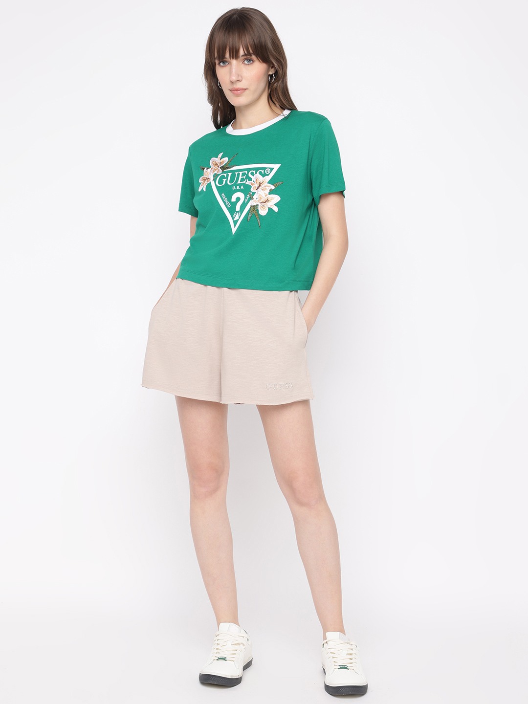 Discover ultimate comfort with our beige high-rise shorts for women. Crafted from breathable cotton, these regular fit shorts feature an elasticated closure for a perfect fit. The solid pattern adds a touch of elegance, making them ideal for casual outings or relaxed weekends. Elevate your wardrobe with this versatile essential.