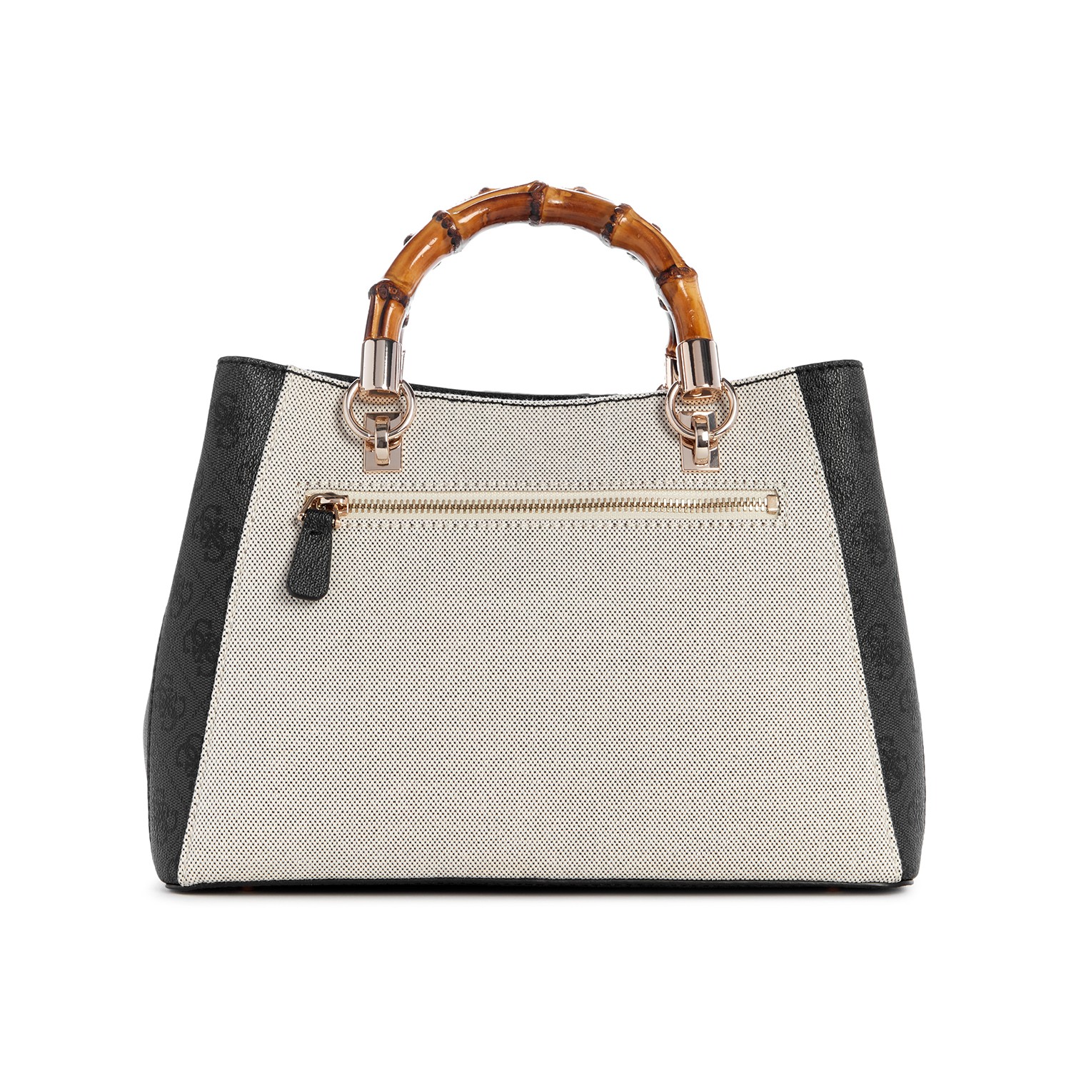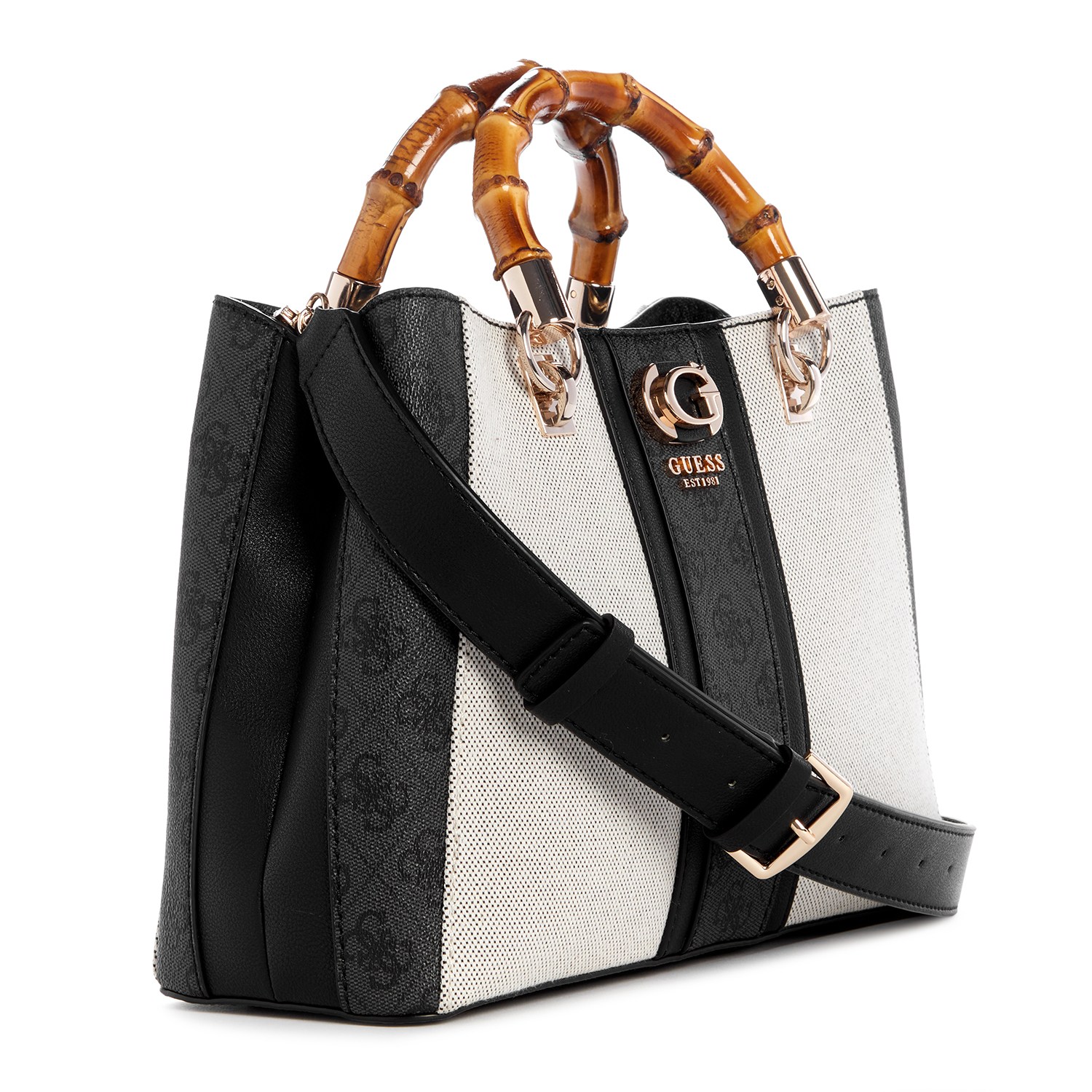 Guess Women's Black Cotton Polyester Blend Printed Satchel Bag
