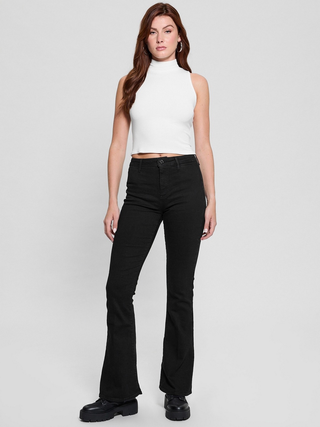 Discover the perfect blend of style and comfort with our women's black jeans. Crafted from a premium cotton blend fabric, these jeans offer a regular fit that flatters every silhouette. The solid pattern and mid-rise design provide a timeless look, making them a versatile addition to your wardrobe. Featuring a classic button closure, these jeans ensure a secure fit while allowing ease of movement. Ideal for both casual outings and more polished occasions, they pair effortlessly with your favorite tops and accessories. Elevate your everyday style with these essential jeans.