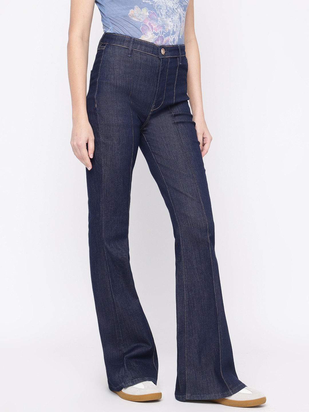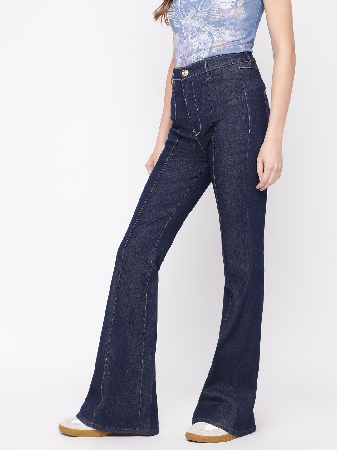 Discover the perfect blend of style and comfort with our blue flare jeans for women. Featuring a high-rise fit, button and zip fly closure, and crafted from a soft cotton blend fabric, these jeans offer a flattering silhouette. Ideal for any occasion, they effortlessly elevate your everyday wardrobe.