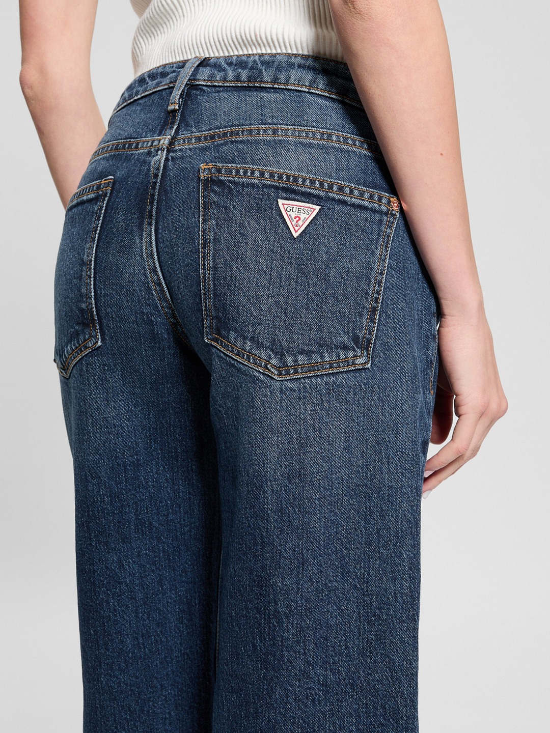 Guess Women's Blue Solid Mid-Rise Straight Leg Jeans