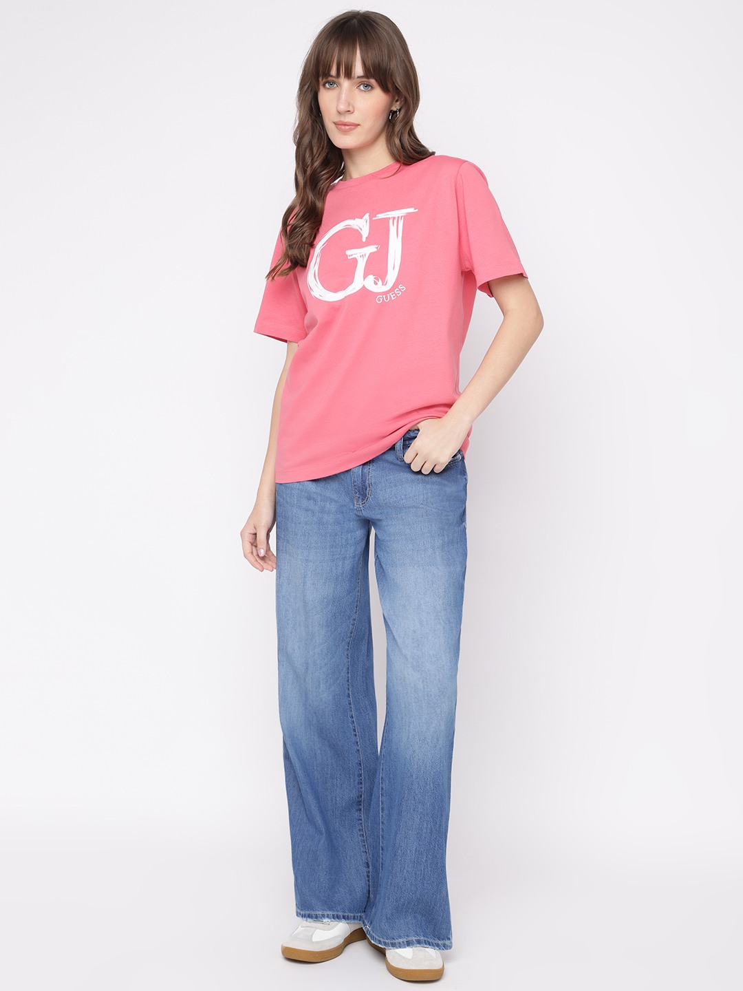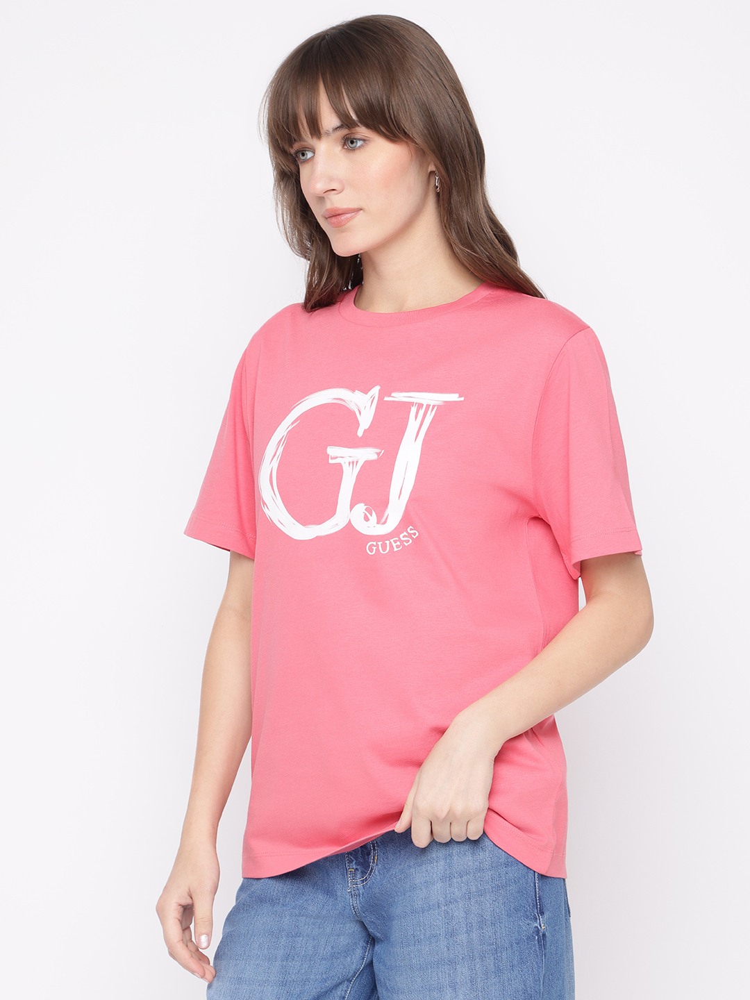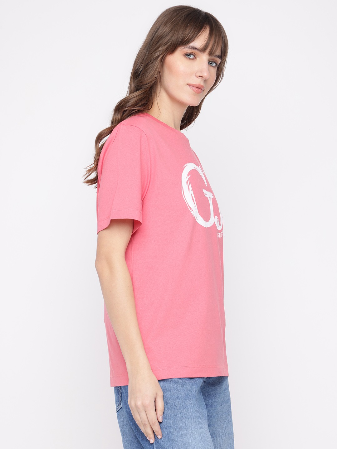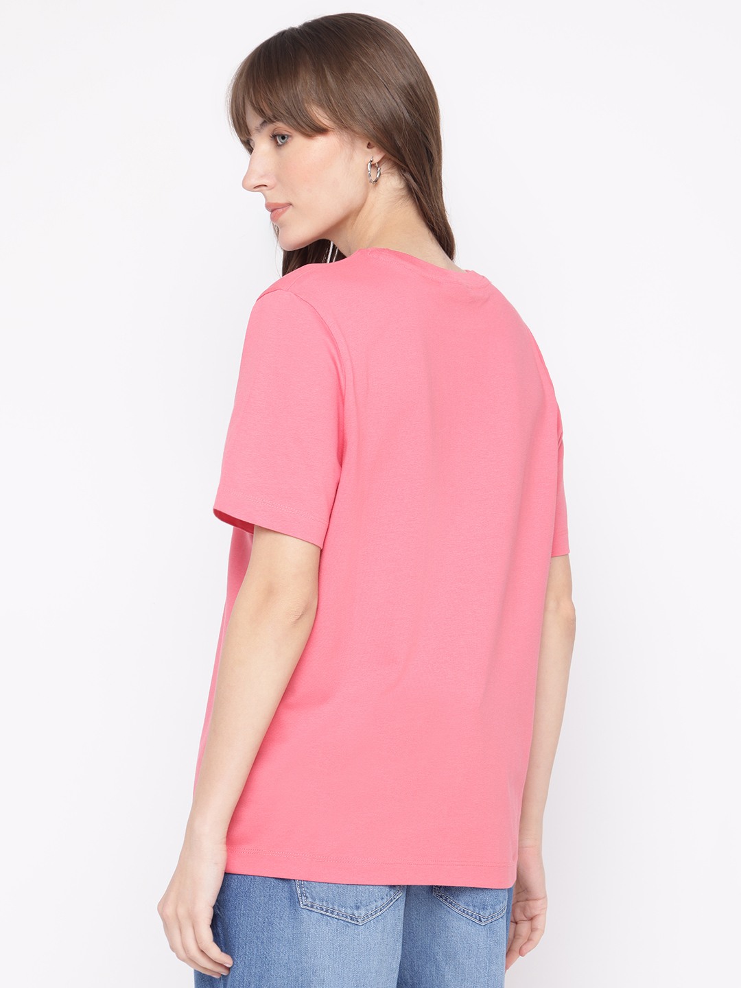 Elevate your casual wardrobe with our pink typography-patterned T-shirt. Crafted from soft cotton, it offers a regular fit for ultimate comfort. Featuring short sleeves and a classic crew neck, this slip-on design is perfect for everyday wear. Ideal for women seeking style and ease, it's a must-have staple for any closet.