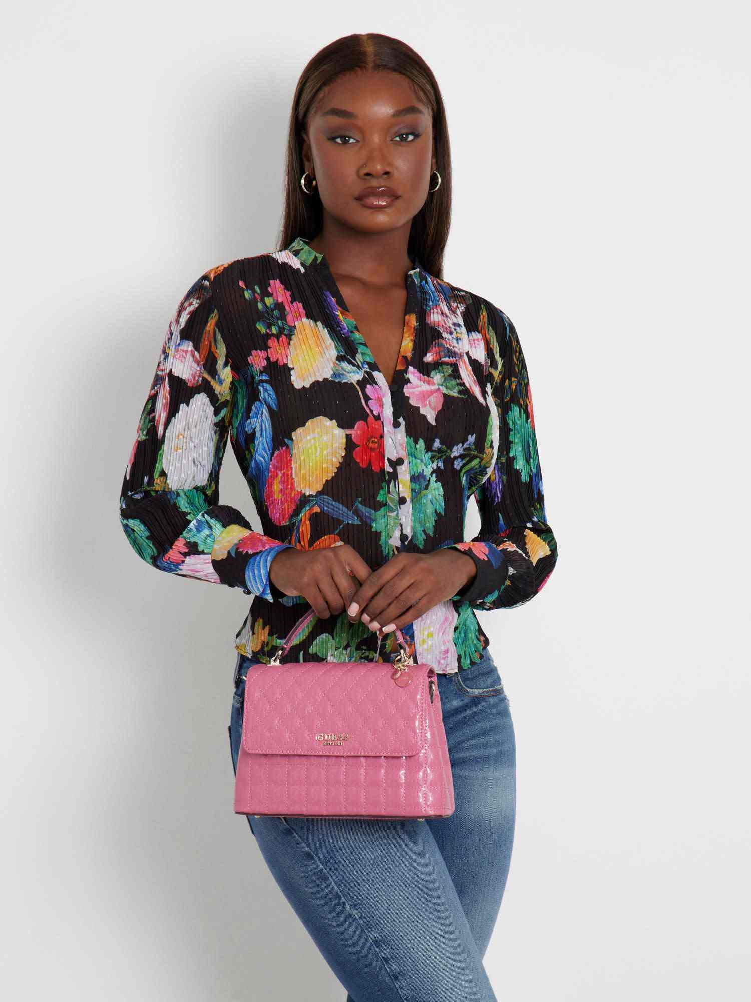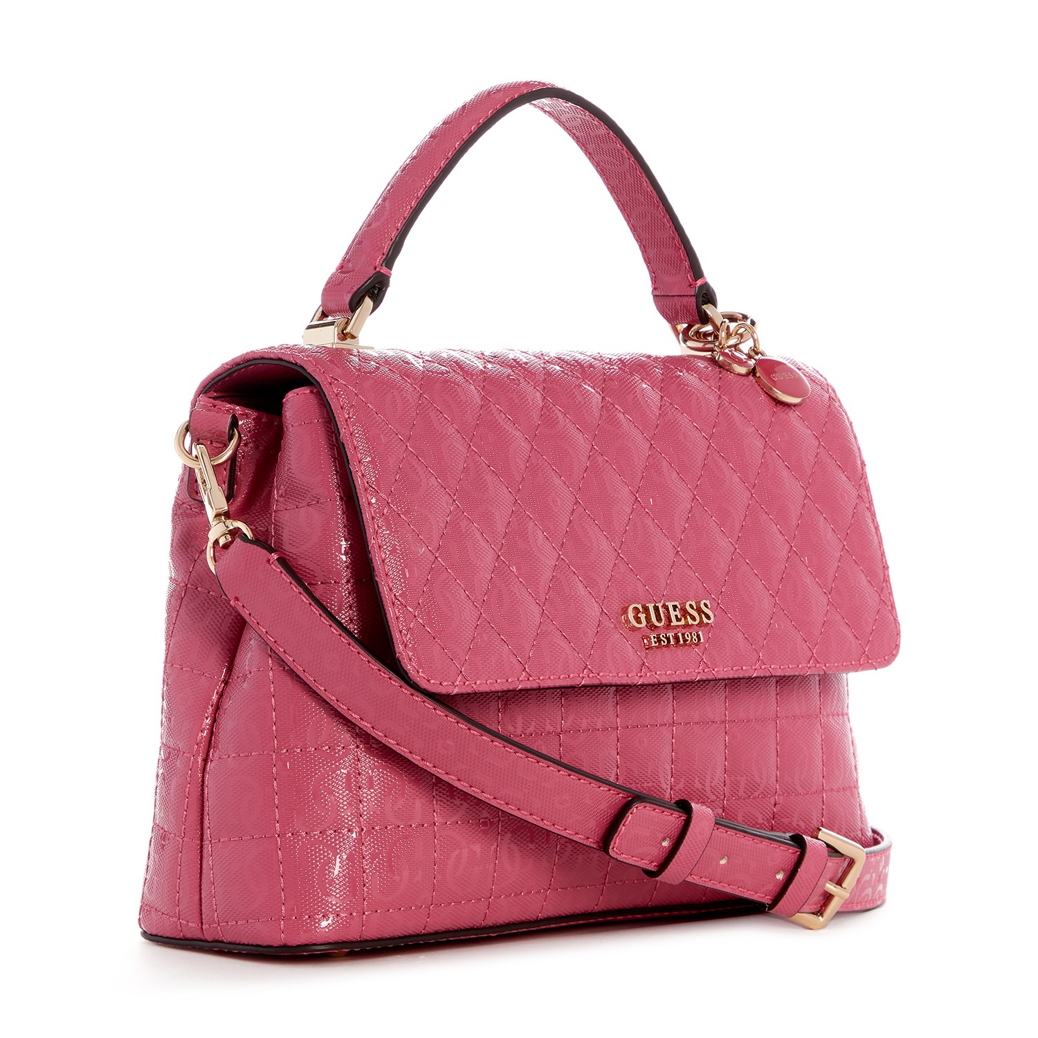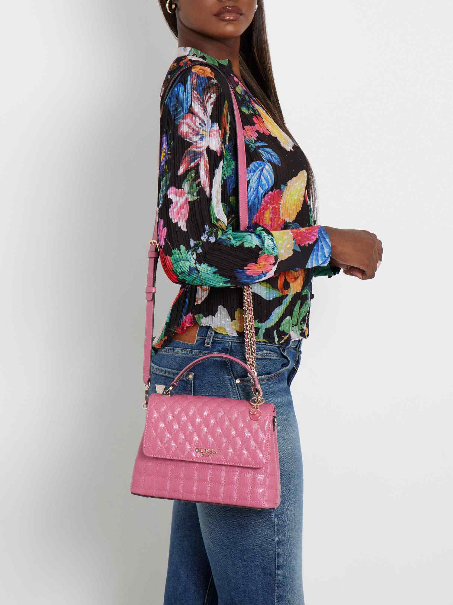 Guess Women's Pink PU Quilted Satchel Bag