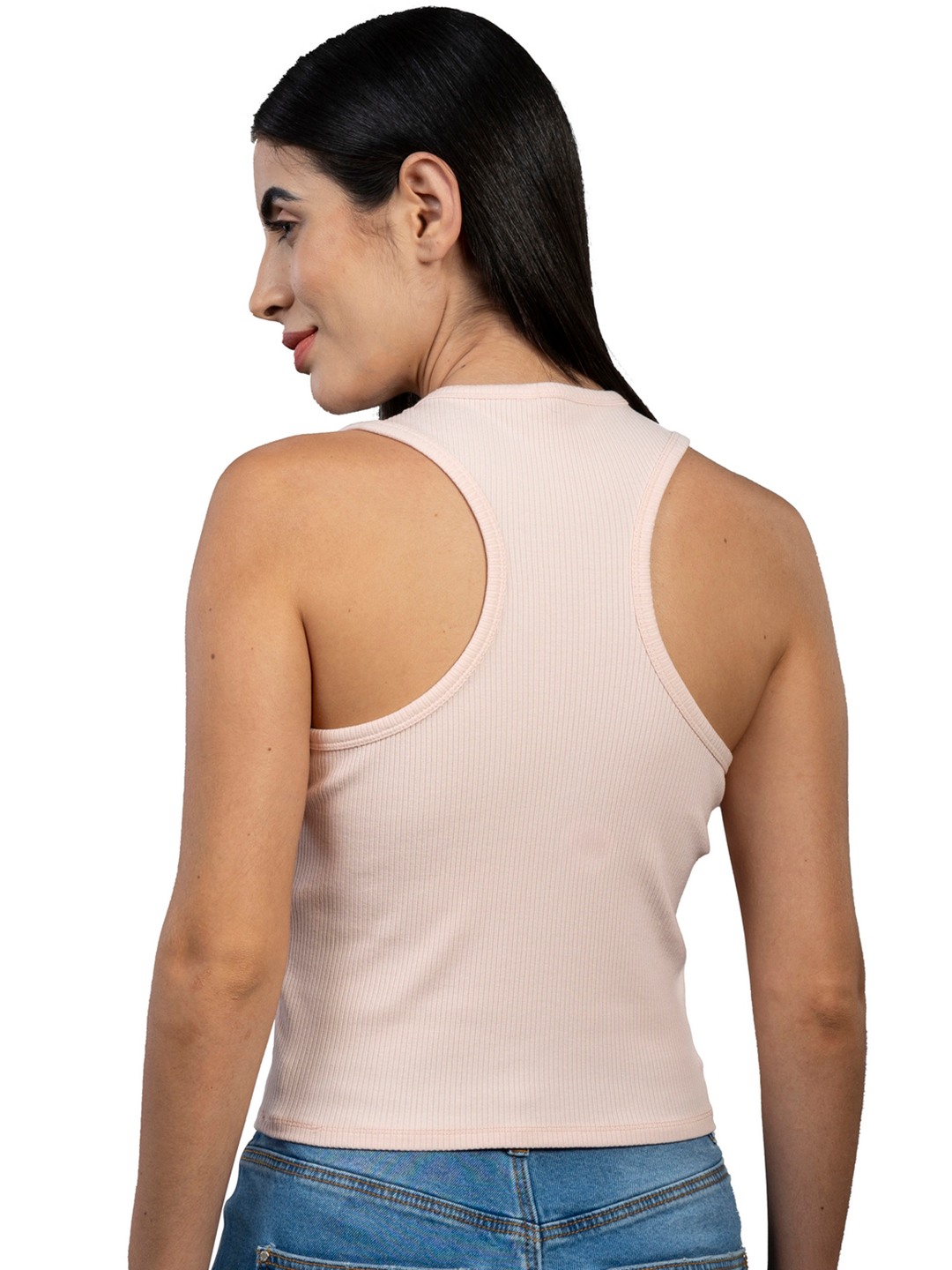 Women's Pink Viscose Solid Regular Fit Sleeveless Top