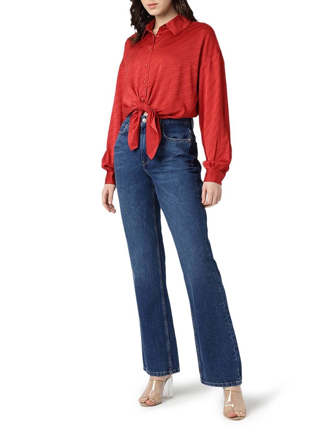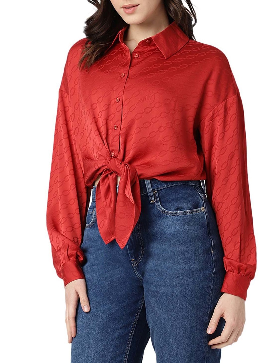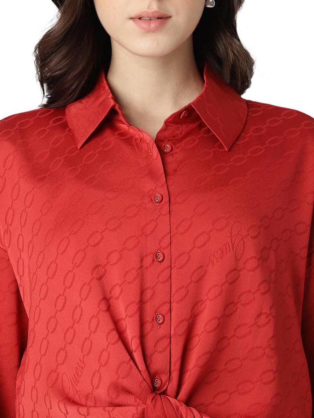 Elevate your wardrobe with this striking red shirt, featuring a captivating geometric pattern. Designed for a regular fit, it boasts long sleeves and a sophisticated spread collar. Crafted from high-quality polyester, it ensures comfort and durability. The button closure adds a classic touch, making it a versatile choice for any occasion.