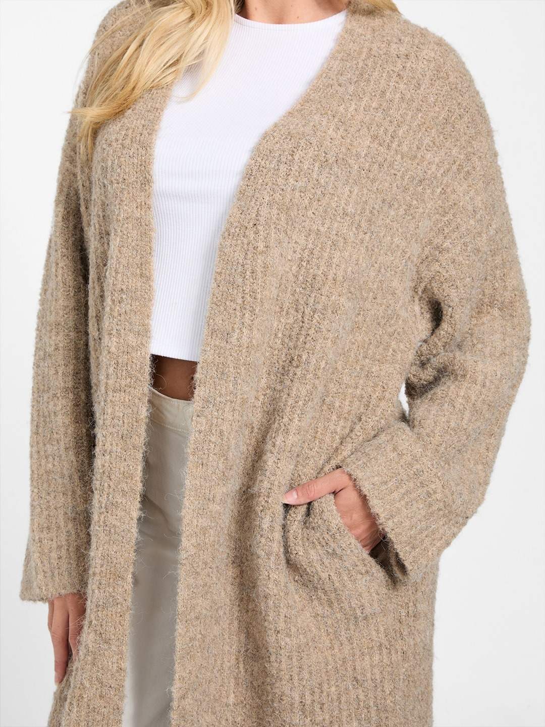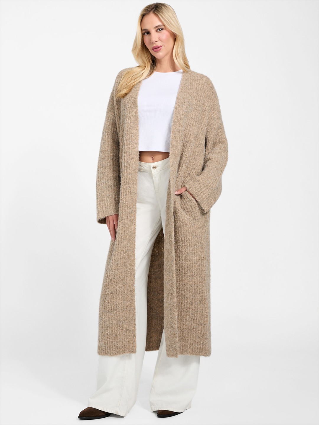 Elevate your wardrobe with our elegant brown cardigan, designed for the modern woman who values both style and comfort. This regular-fit cardigan features a timeless solid pattern, making it a versatile addition to any outfit. Crafted from high-quality polyester fabric, it offers a soft touch and lasting durability. The full sleeves and sophisticated shawl neck add a touch of refinement, while the front open closure ensures easy layering. Perfect for any occasion, this cardigan is a must-have staple for your collection.