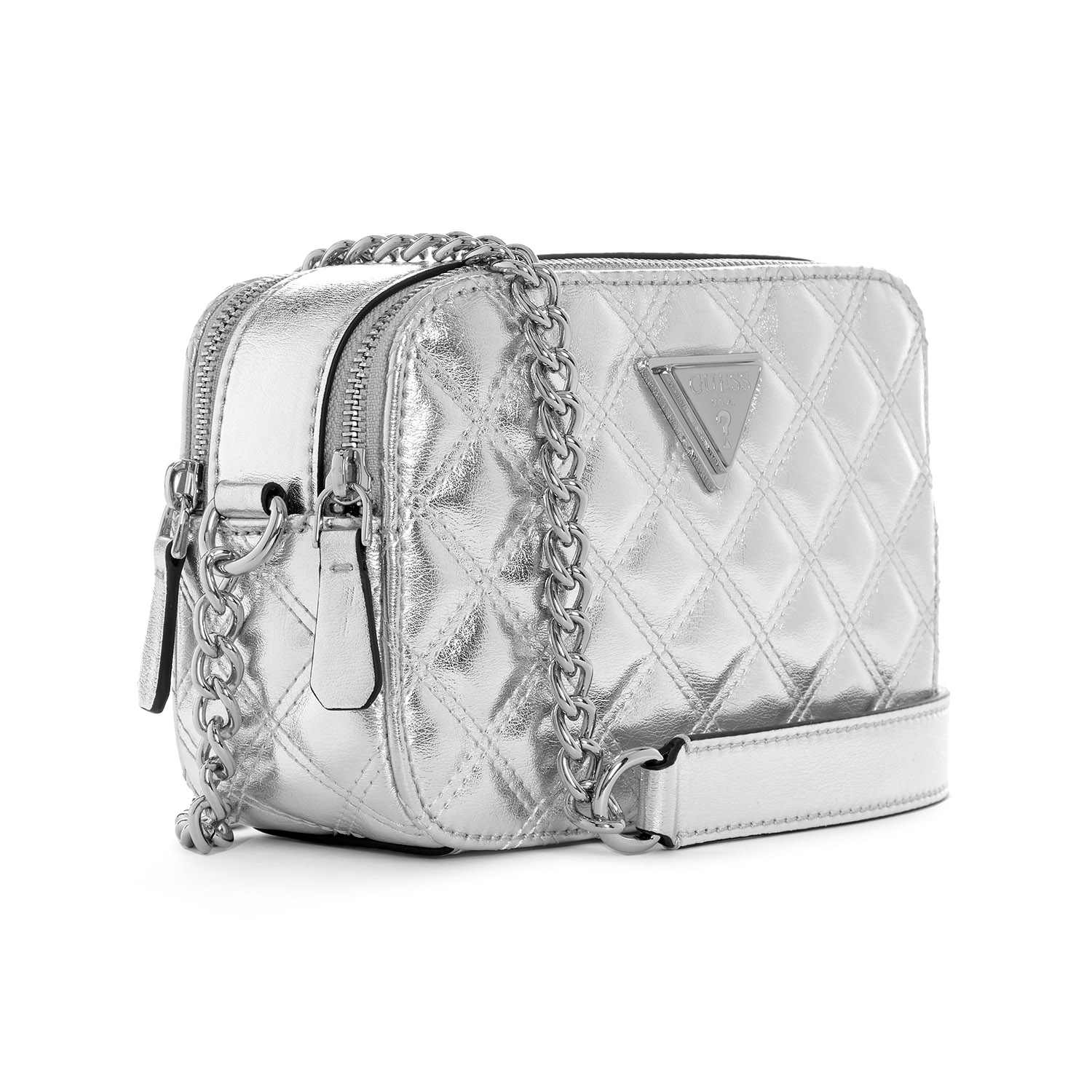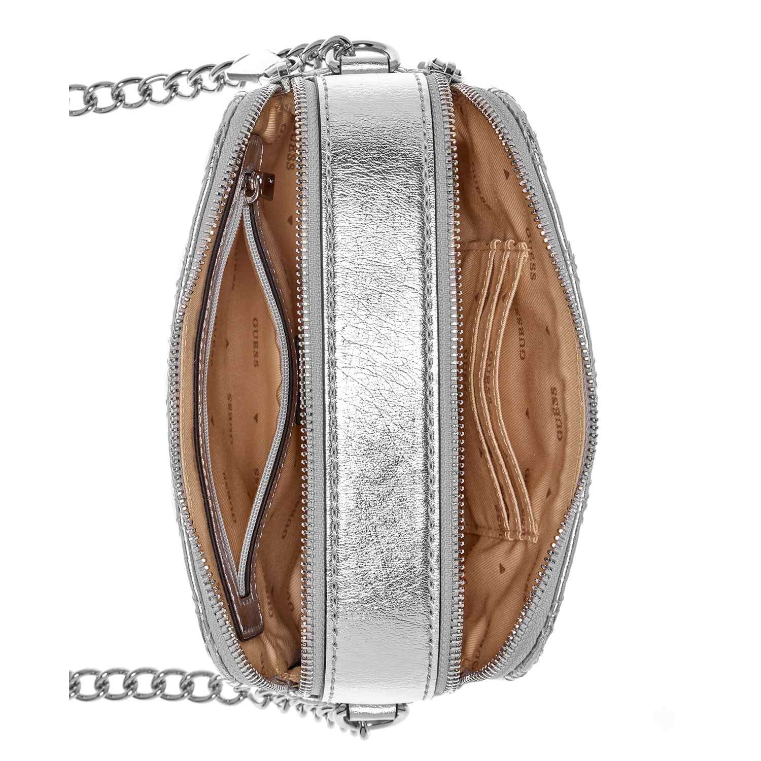Guess Women's Silver PU Quilted Camera Bag